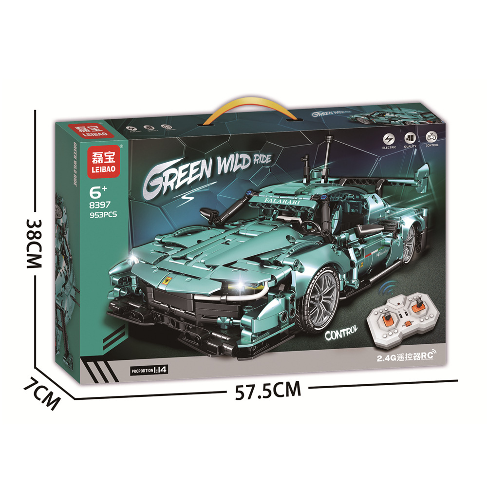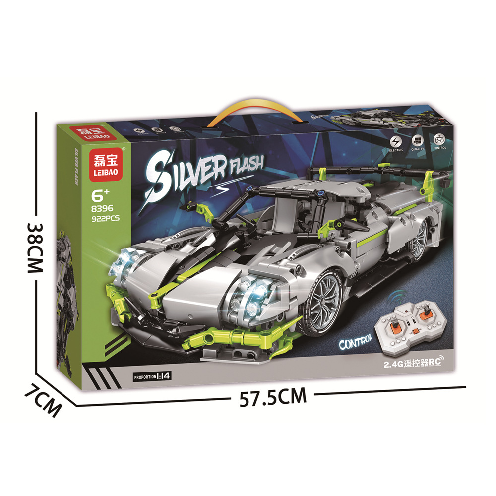 leibo 1:14 technology remote control car 2.4g paint spraying parts purple cow sports car compatible with lego building blocks car model 8398