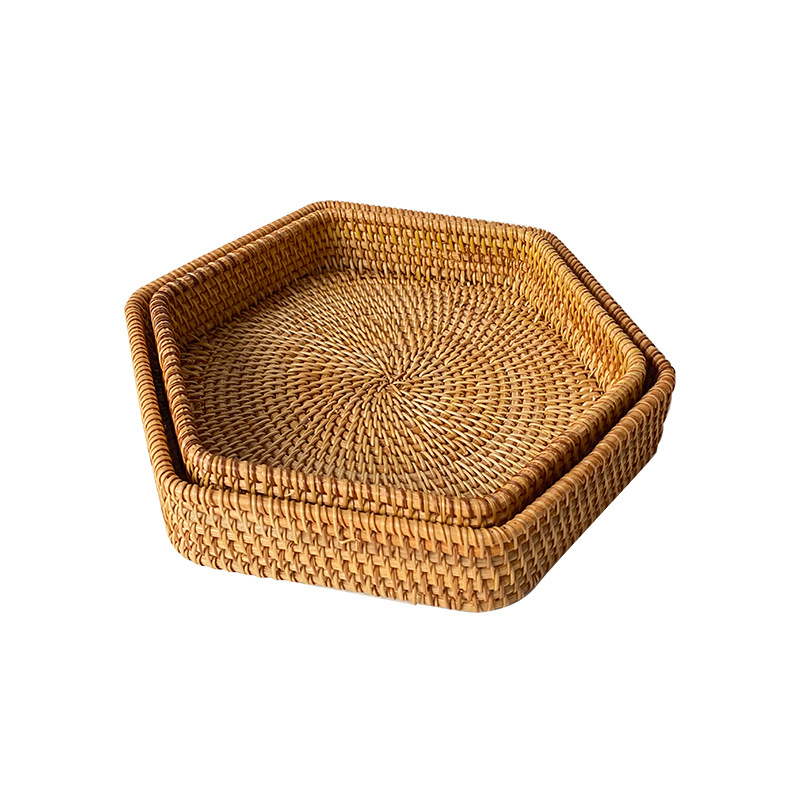 rattan hexagonal fruit plate 2-piece set
