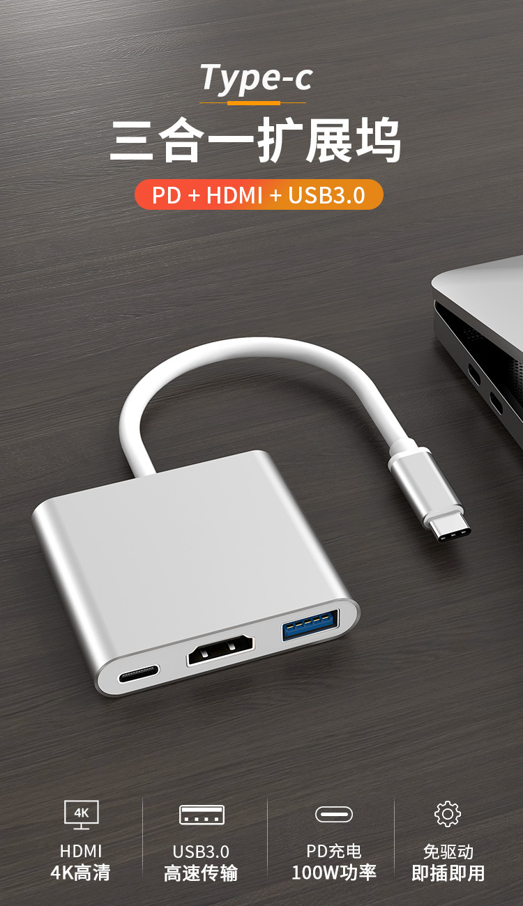 3in1-4 [hdmi + usb + pd] silver