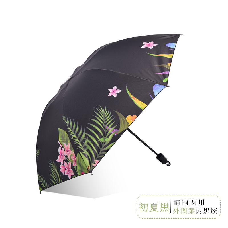 manual old small black umbrella color random inner pattern