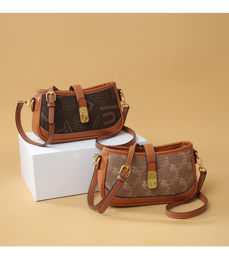 women's bag 2024 new retro printed crossbody bag high-grade small square bag shoulder bag underarm bag