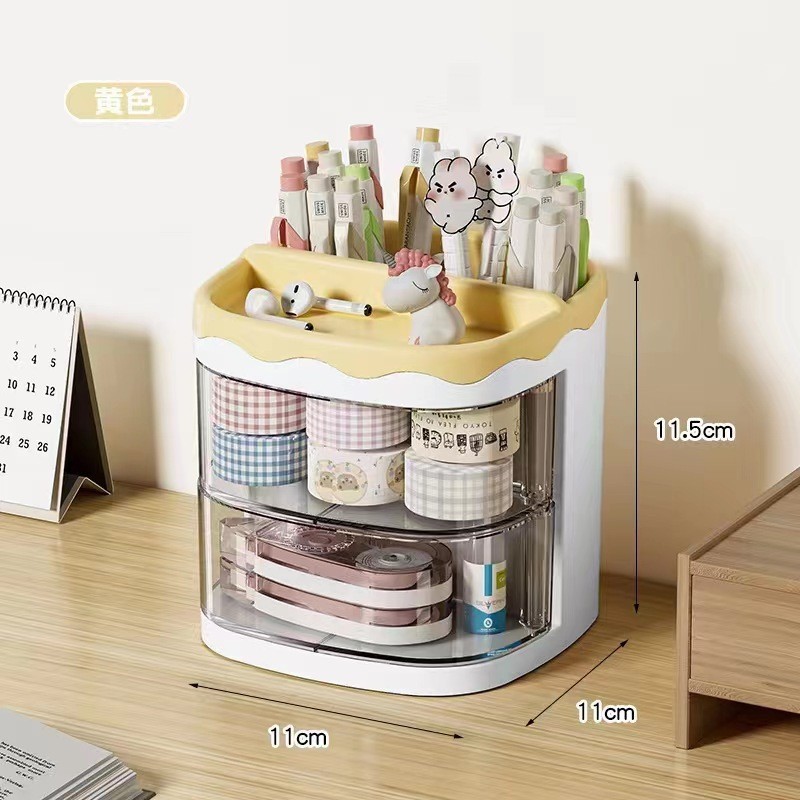 lemon yellow drawer-style round pen holder [send random stickers]]