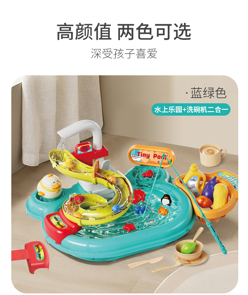 water park + fishing model-blue (including battery + screwdriver)