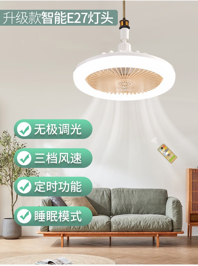 e27 screw fan lamp fan chandelier all-in-one light remote control kitchen energy-saving room led household bedroom ceiling lamp