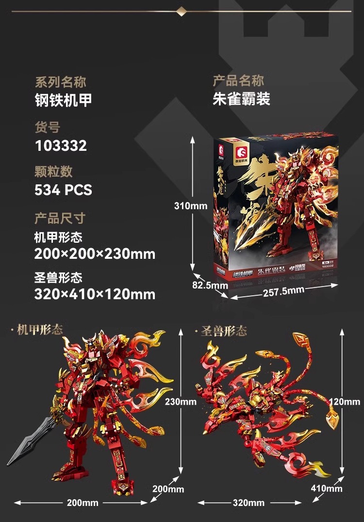 machine change zhuque (variable double form after assembly) 531pcs [exquisite color box]]