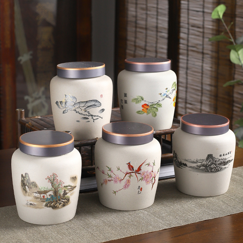 landscape meaning stoneware tea tins