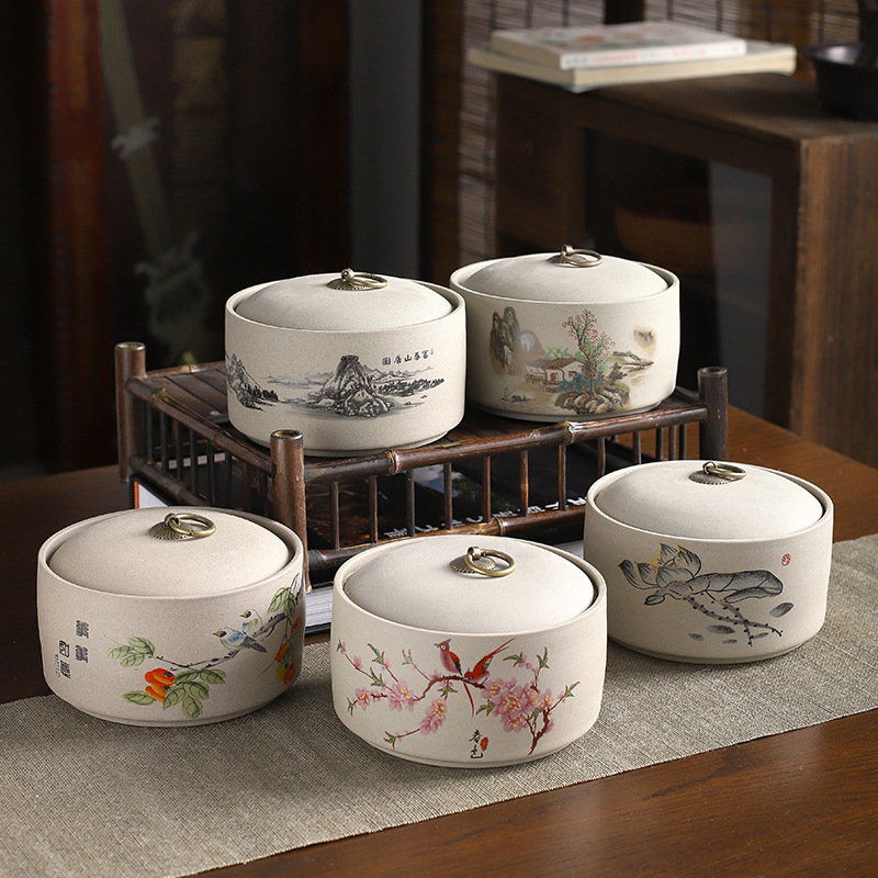 dwelling in the fuchun mountains flat stoneware tea tins 1