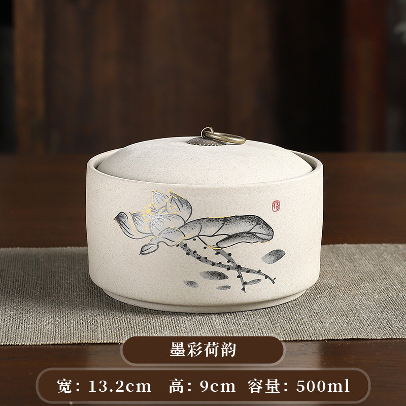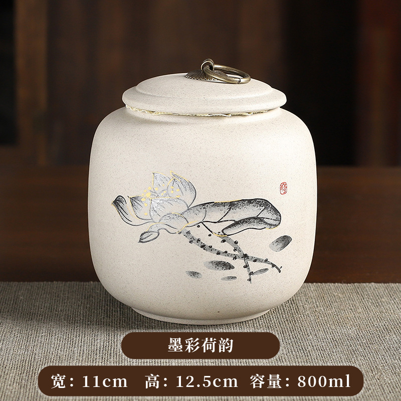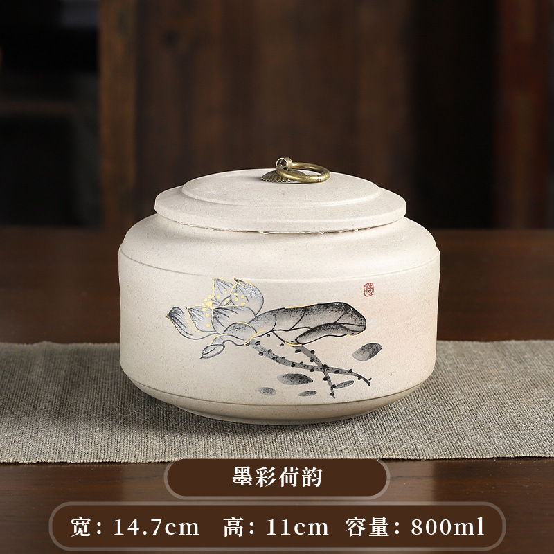 ink color charm of lotus stoneware tea tins 1