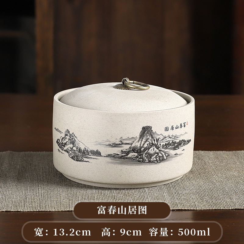 dwelling in the fuchun mountains flat stoneware tea tins