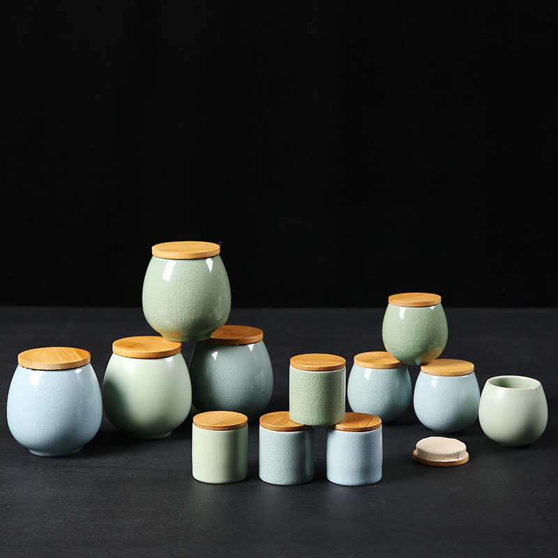 small size bamboo cover ru ware sky blue