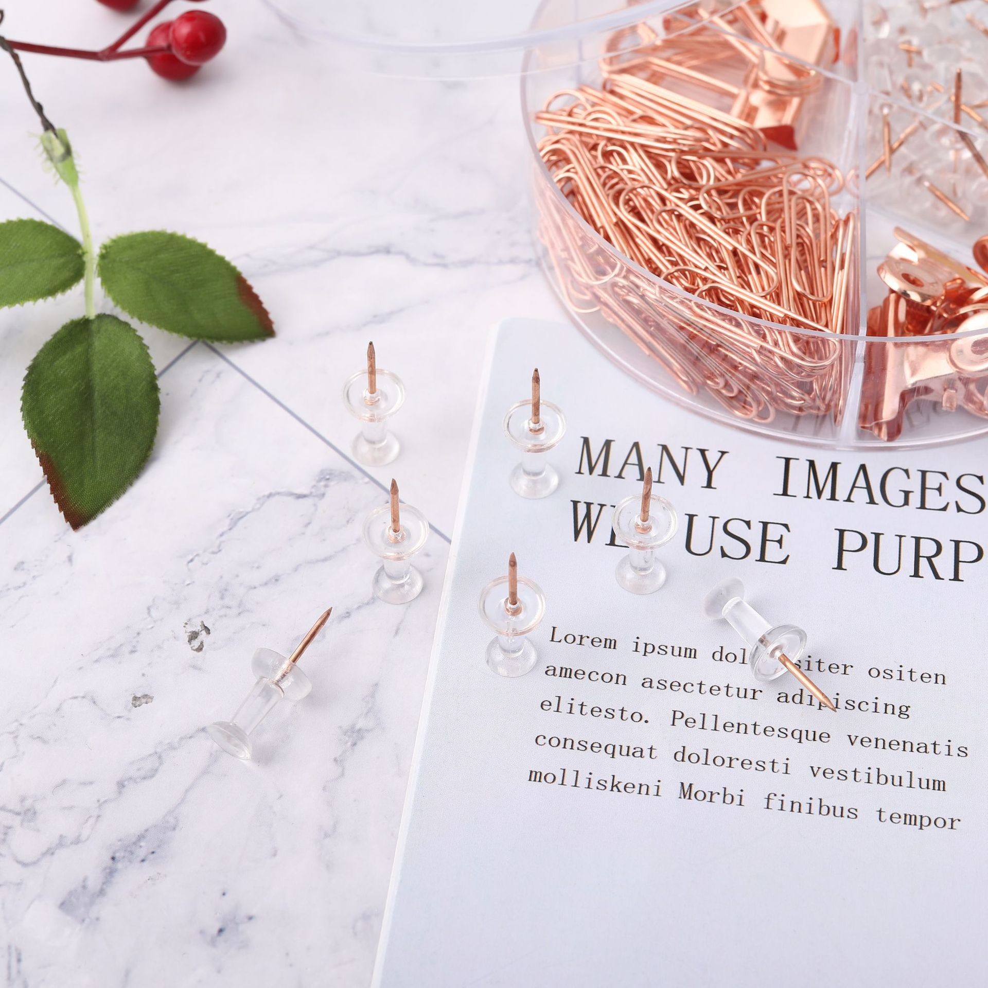 Specification: 30 Earth Nails, 60 Paper Clips, 4 19mm Long-Tailed Clips, 4 Round-Head Clips