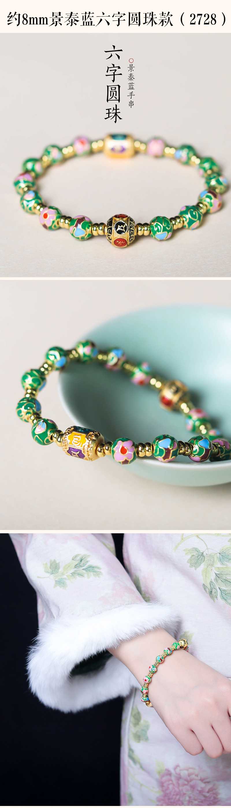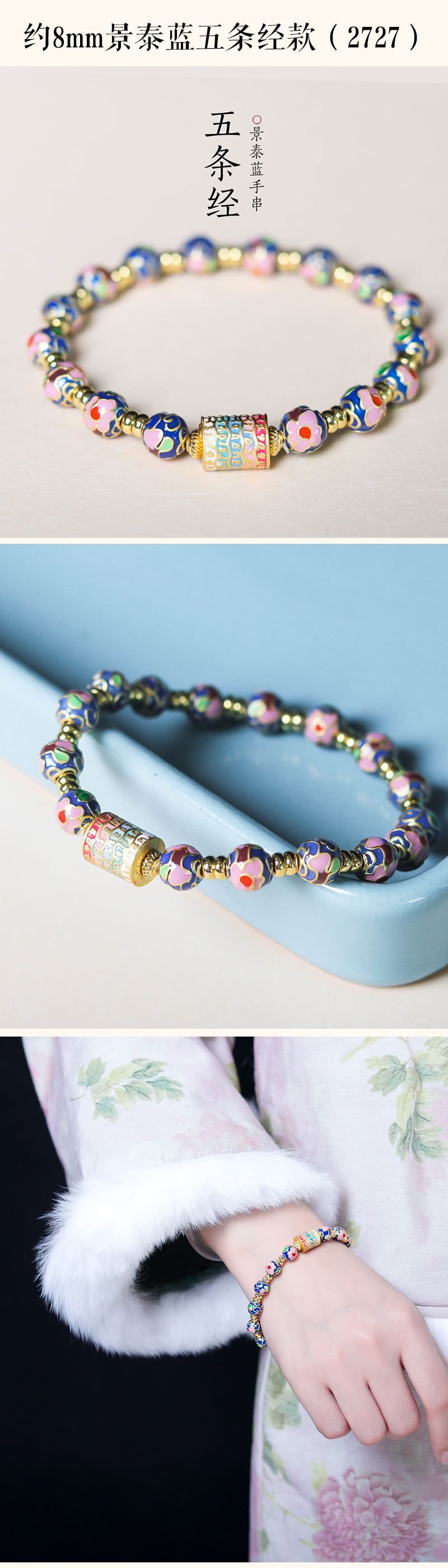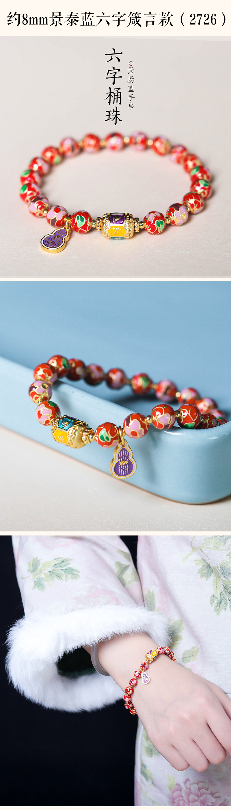 about 8mm cloisonne bracelet (2724-6)