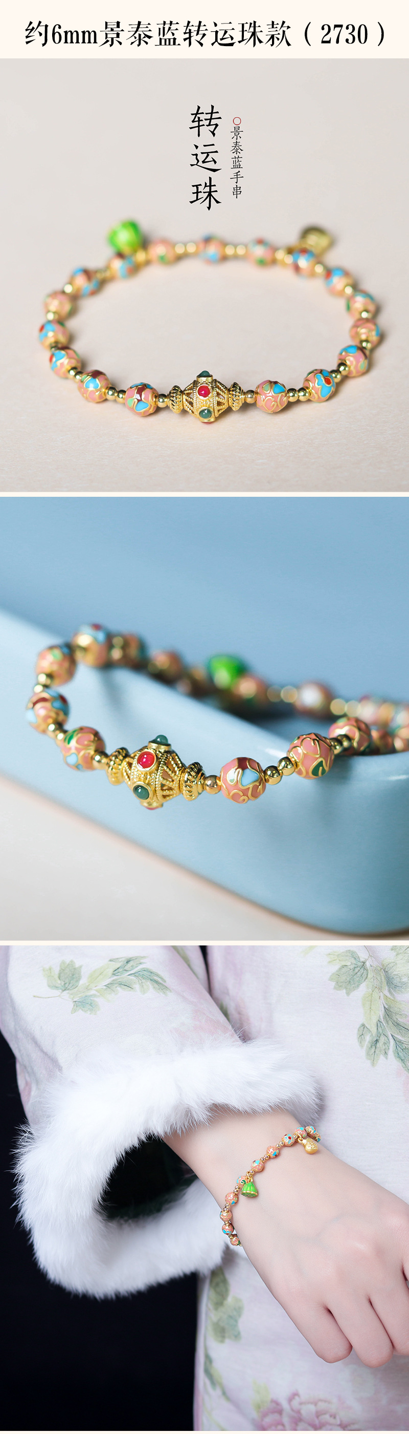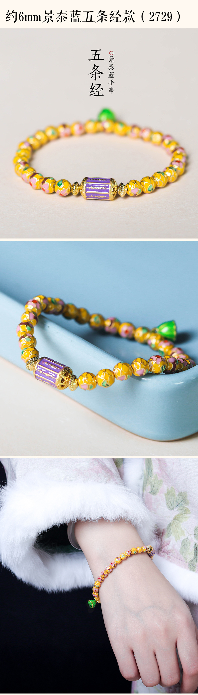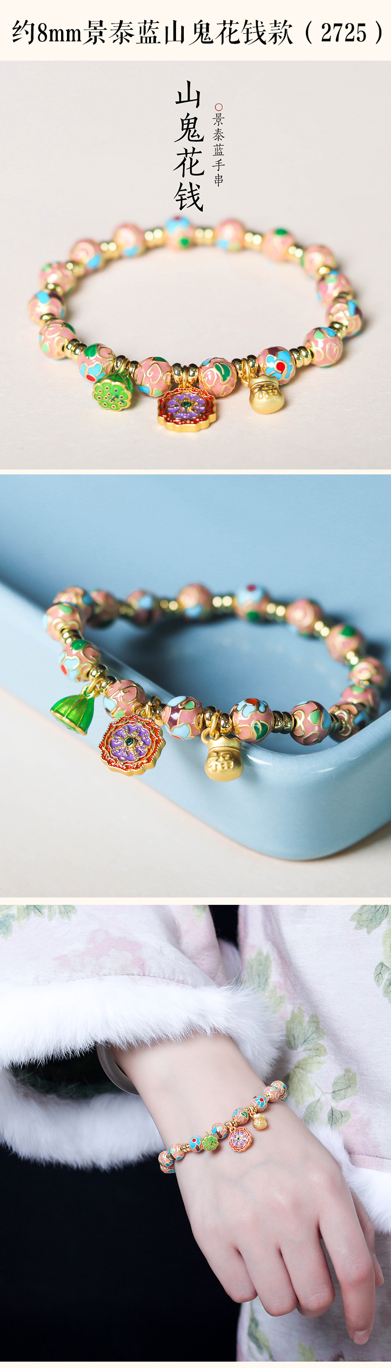 about 8mm cloisonne bracelet (2724-6)