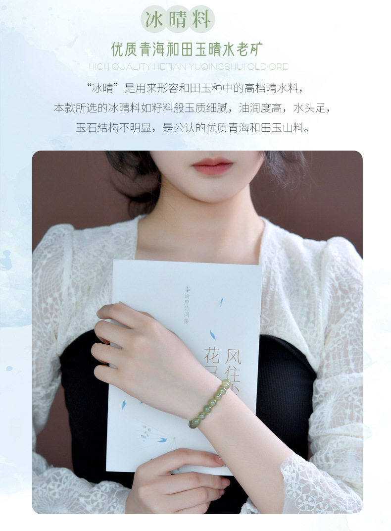beads about 6mm hetian jade koi bracelet (ice clear water/light color)