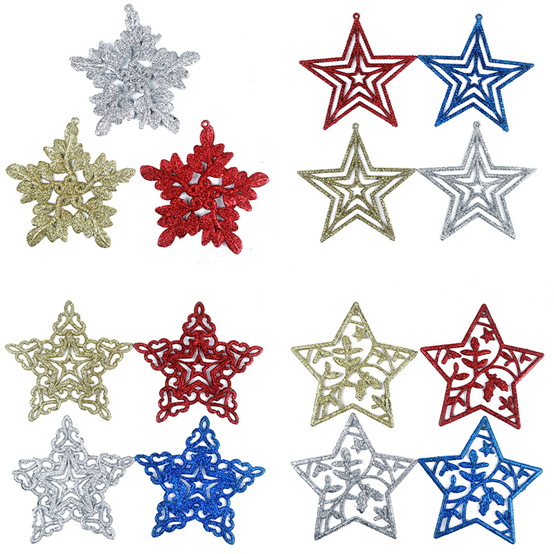11cm christmas five-star glitter powder pendant dusting powder six-color optional glitter christmas decorations pendant plastic pendant