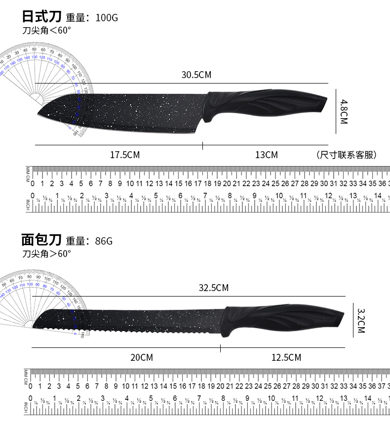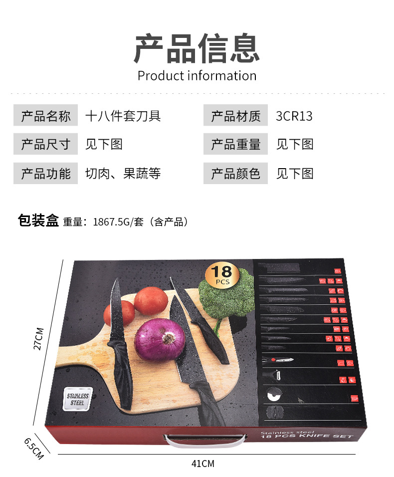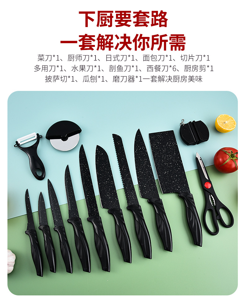 xingchen stainless steel tableware kitchen knife stainless steel knife 18-piece stainless steel spray paint kitchen knife knife set