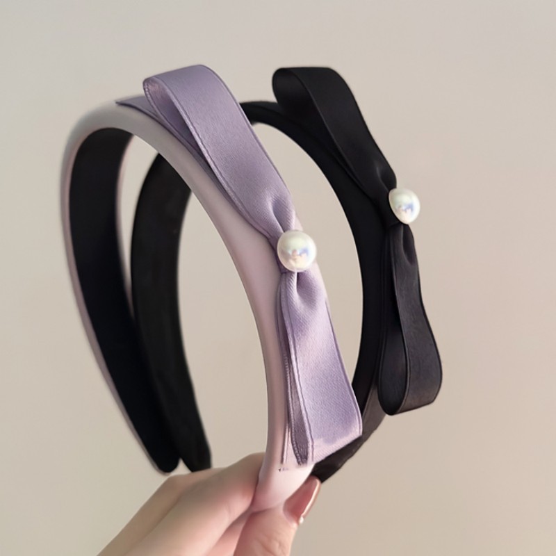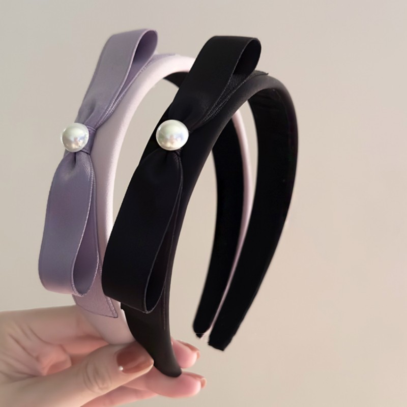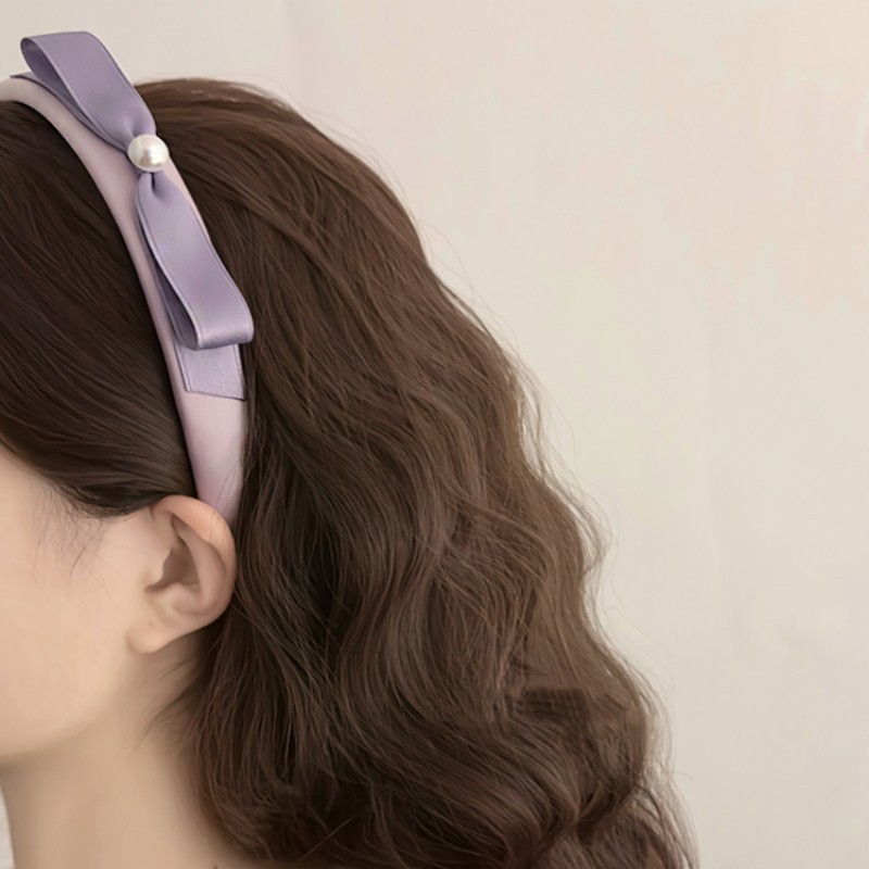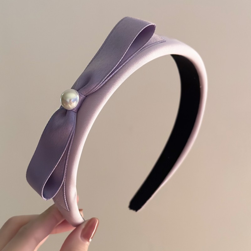 1# satin bow pearl headband-haze purple