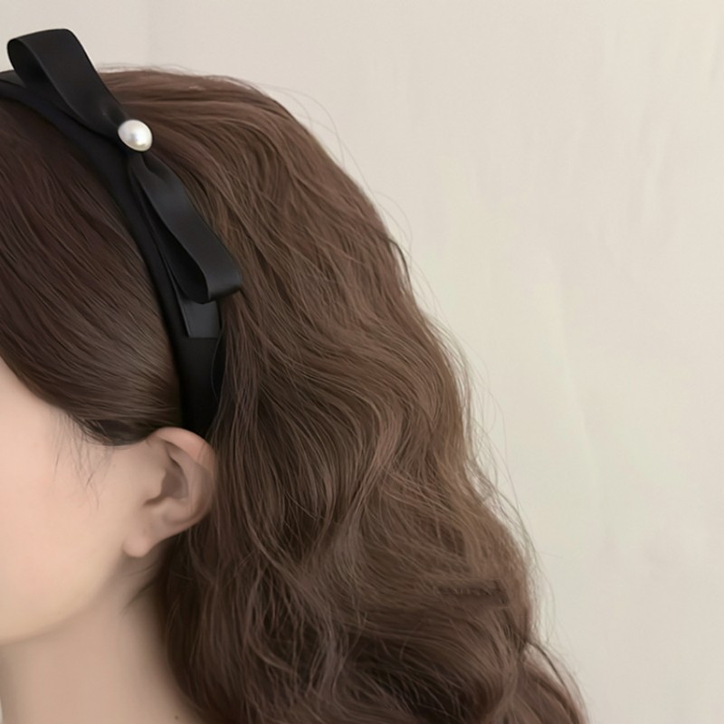 2# satin bow pearl headband-misty black