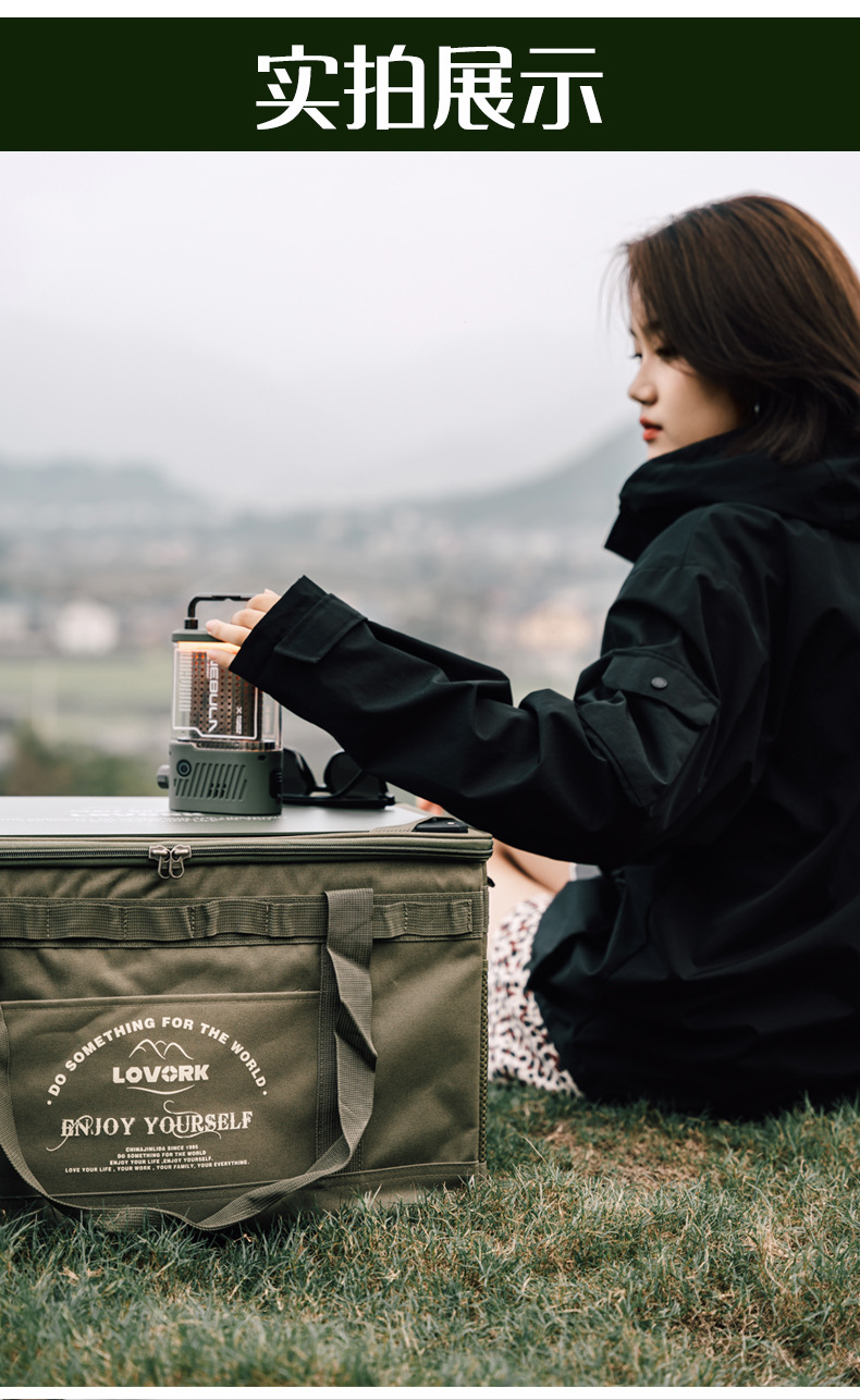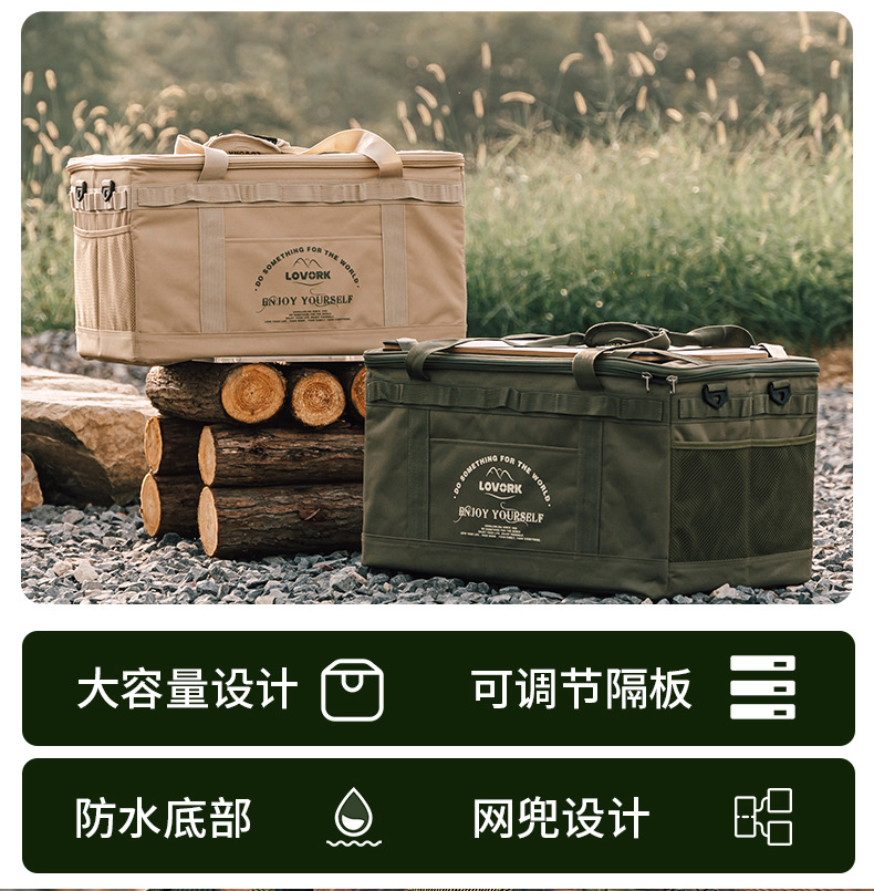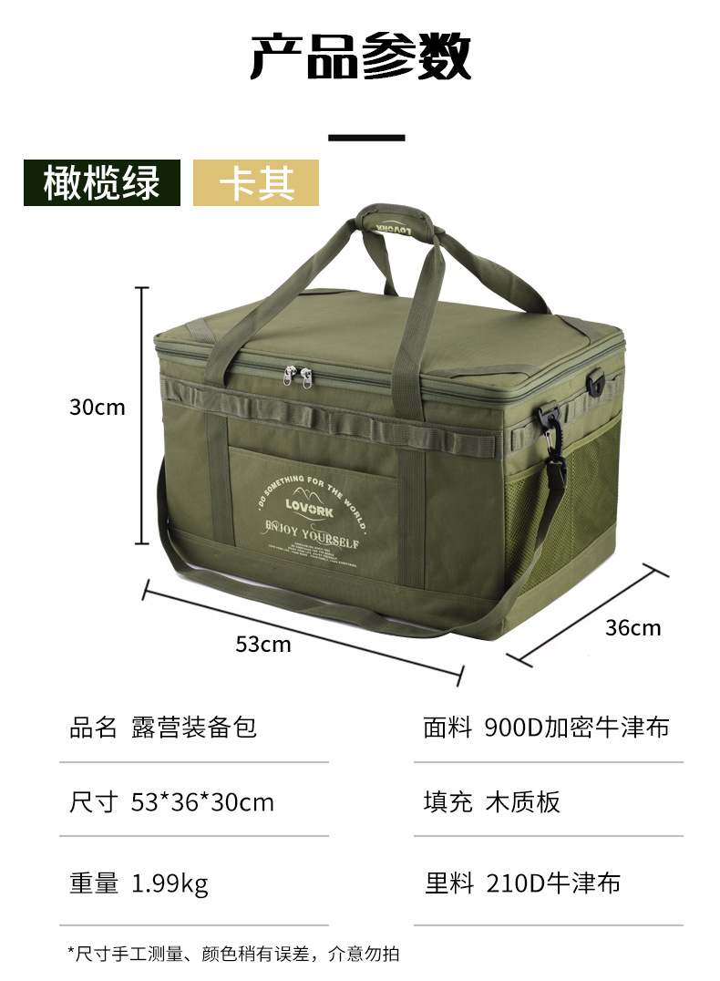 [khaki] large storage bag + wooden table board + table leg complete set (with light rack)