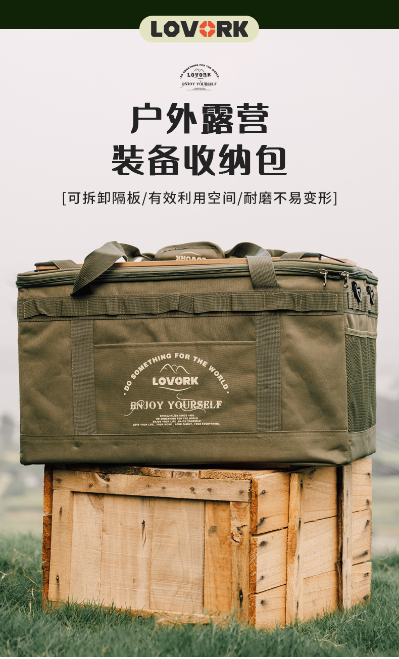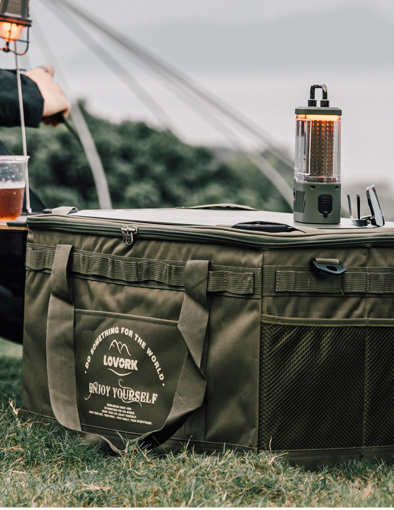 [olive green] large storage bag + wooden table board + table leg complete set (with light rack)