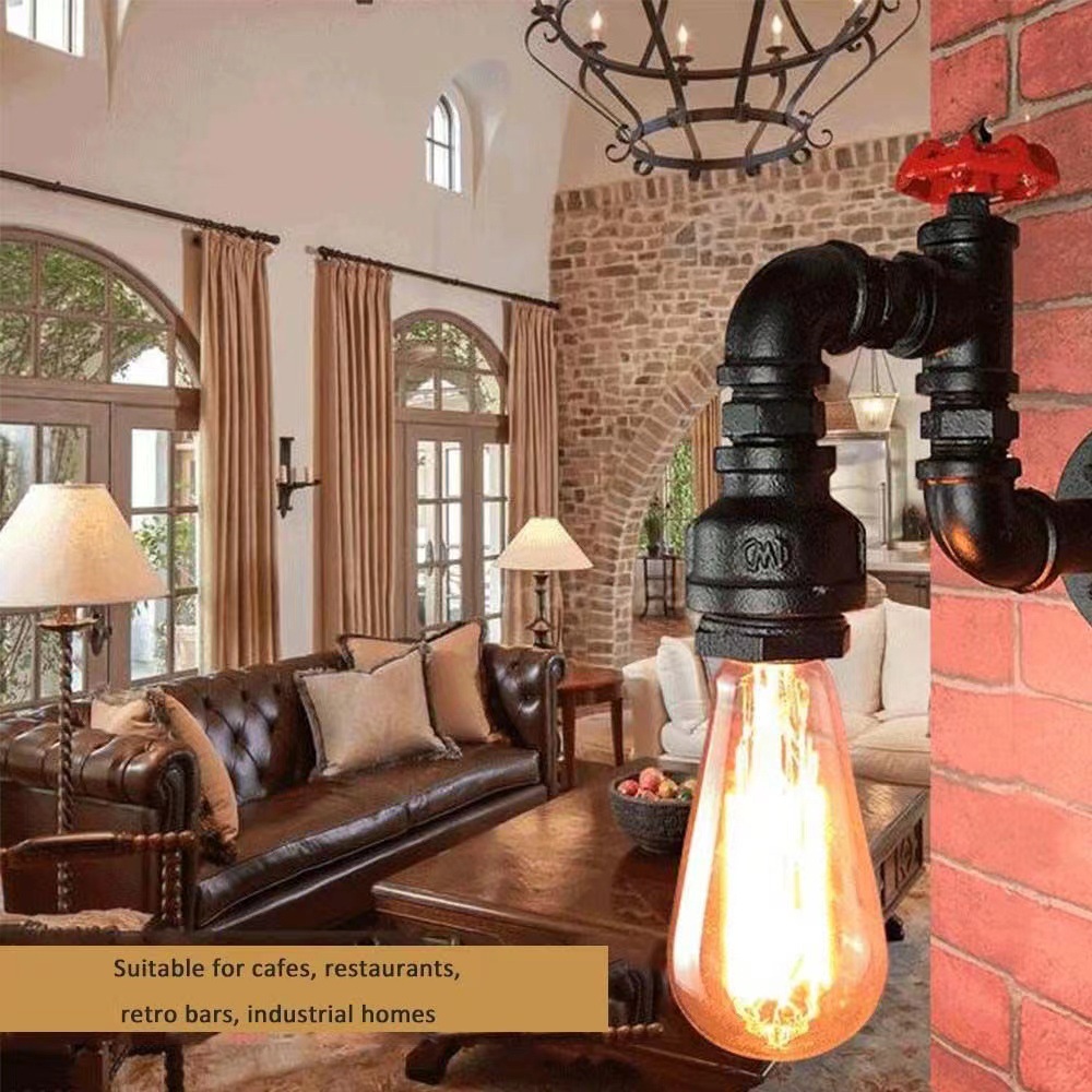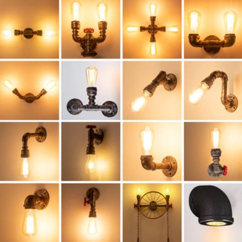 american style old industrial style aisle retro restaurant edison industrial water pipe single head decoration pipe wall lamp e27