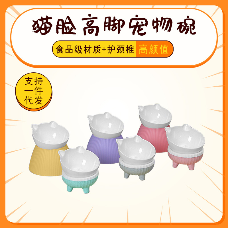 Cartoon Pet Bowl Inclined Tall Bowl Small Dog Neck Protector Cat Bowl Cat Food Holder Anti-Tumble Dog Bowl Pet Tableware