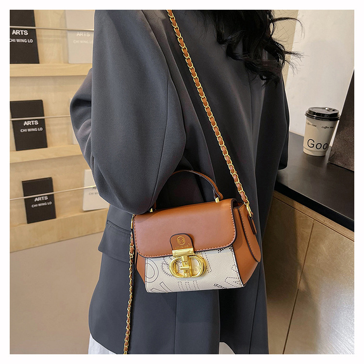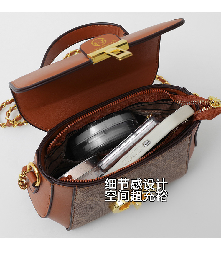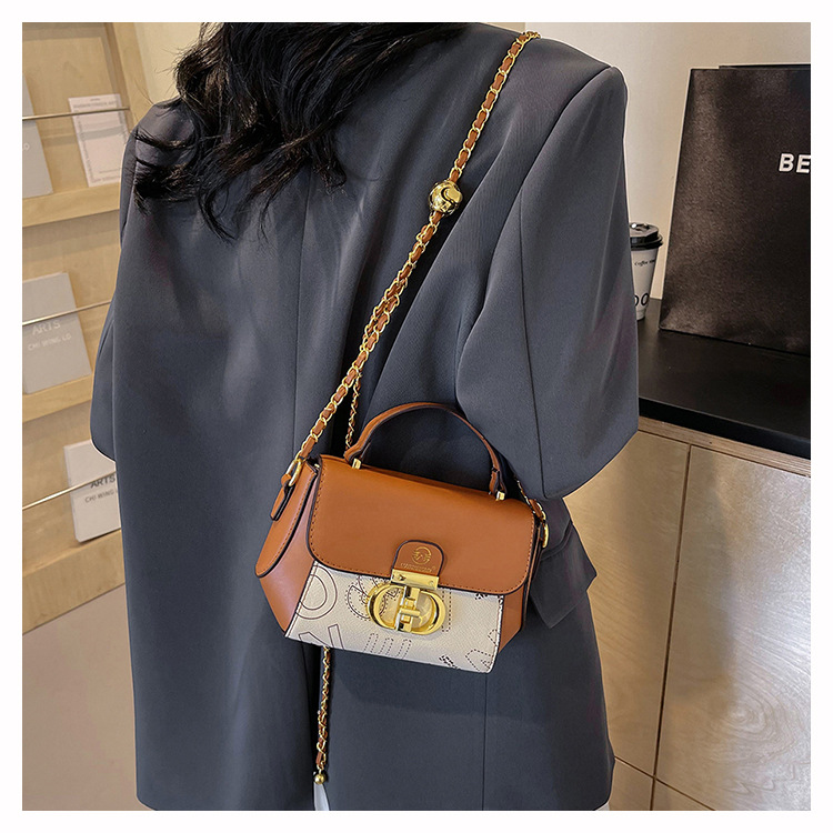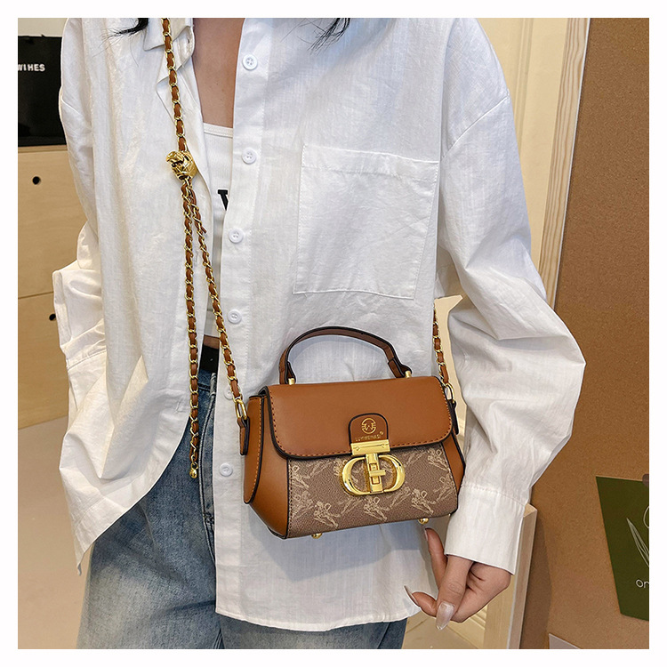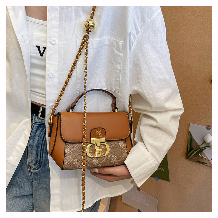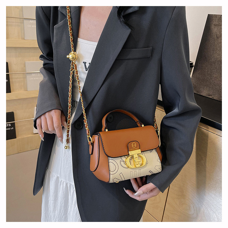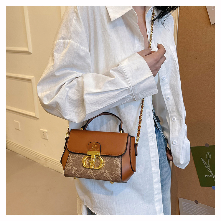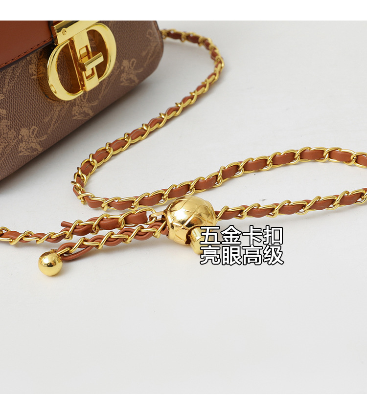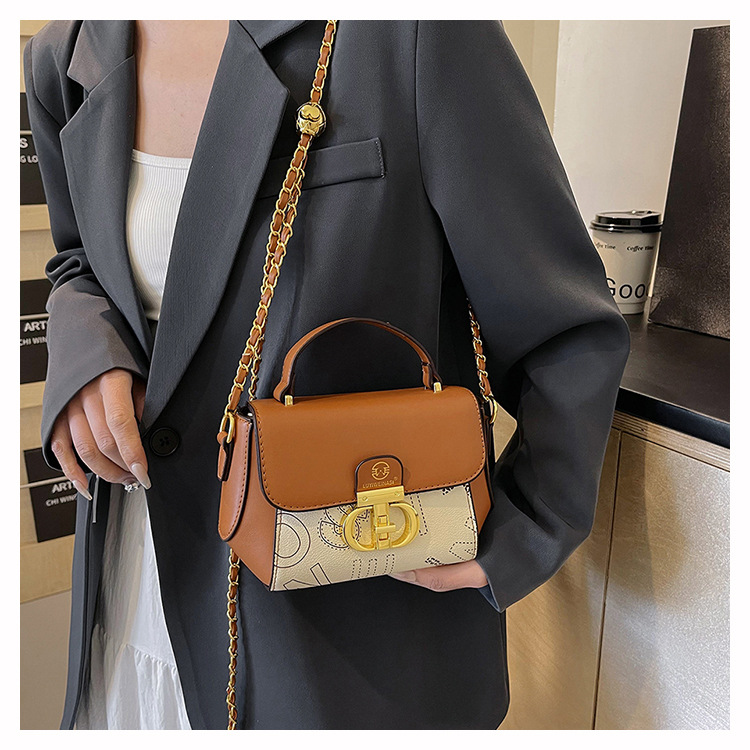 advanced texture trendy bags women's 2024 new printed small square bag chain crossbody shoulder bag