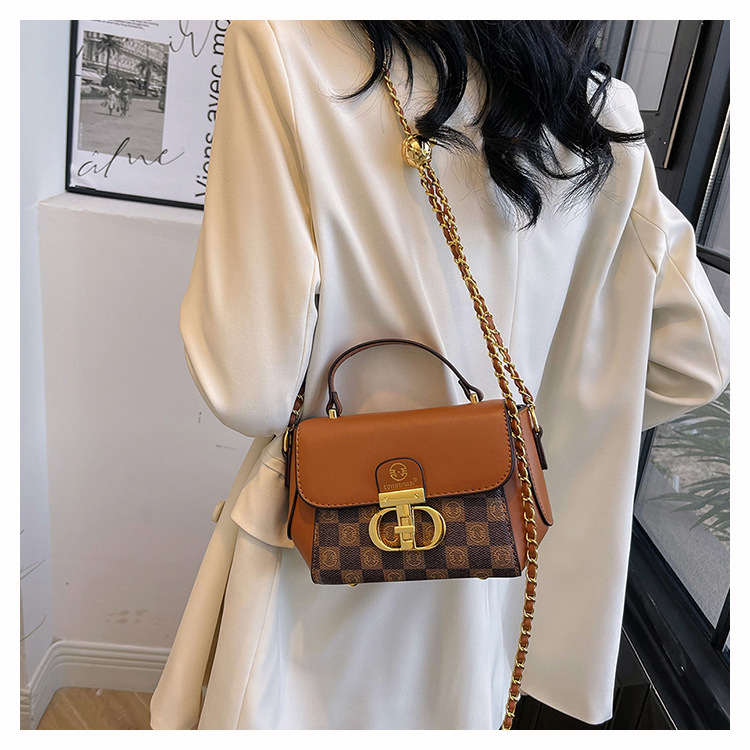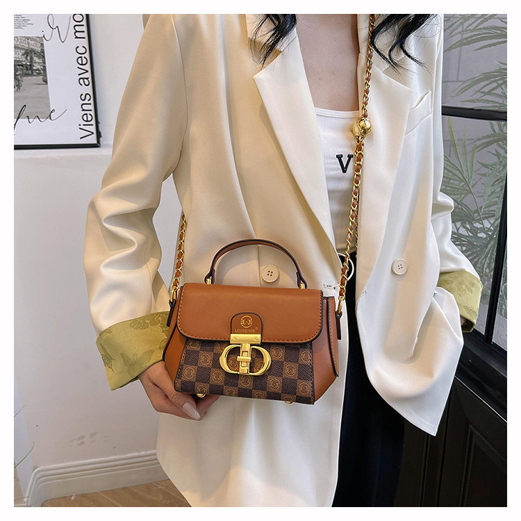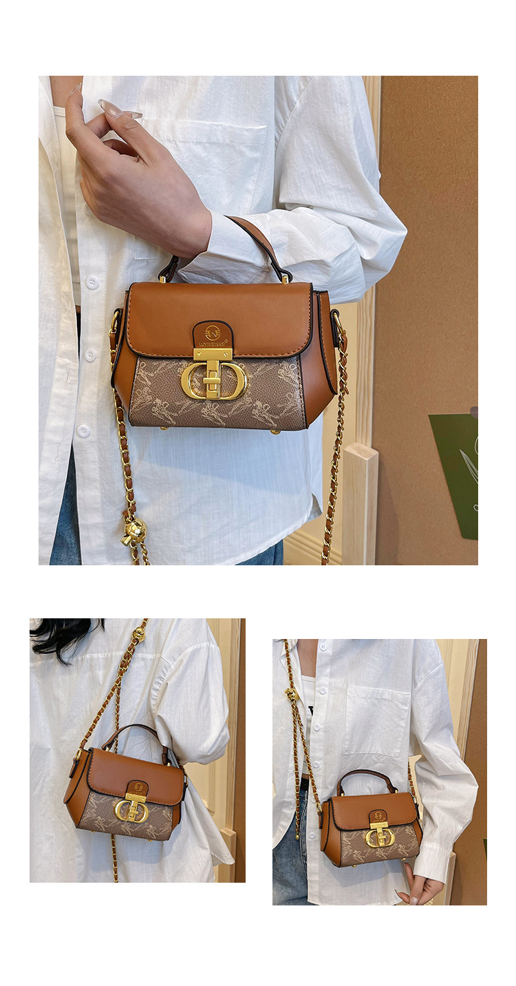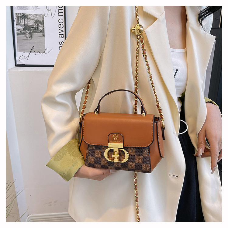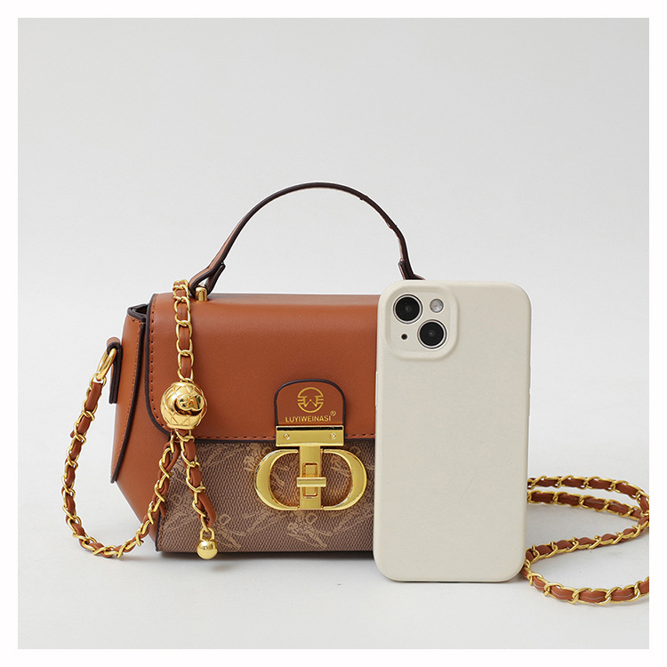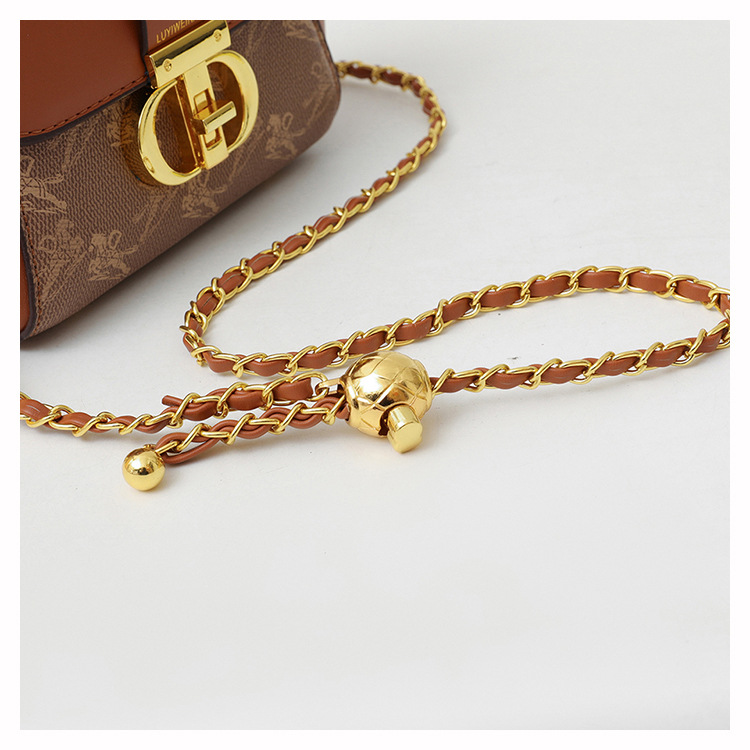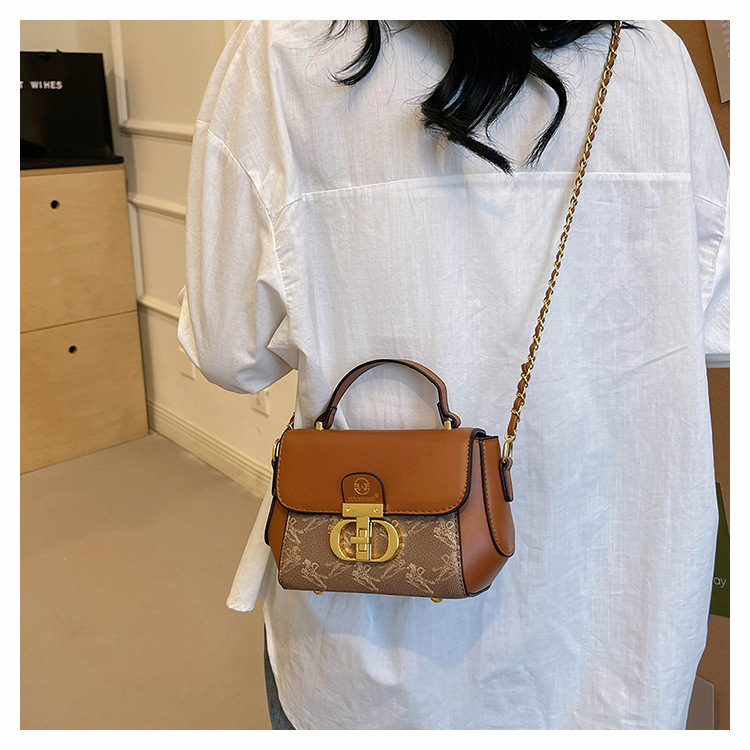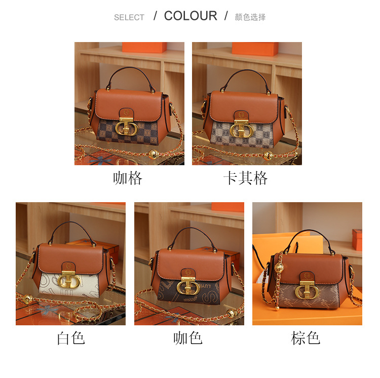 advanced texture trendy bags women's 2024 new printed small square bag chain crossbody shoulder bag