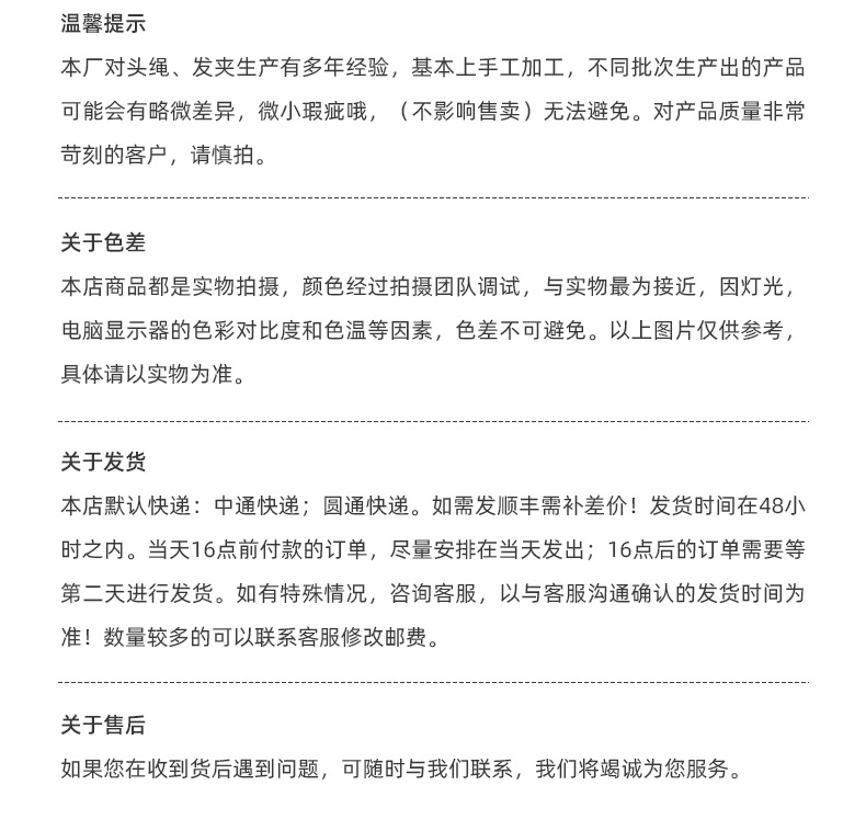 Welcome to our store. If you like the products, you can place an order directly. If you have any questions about quantity, custom orders, or shipping, you can add the manager's WeChat at 13361784699. Please note that the 7-day no-reason return policy is only available for personal use customers. Wholesale sales or customers who take samples are not supported by the 7-day no-reason return policy.