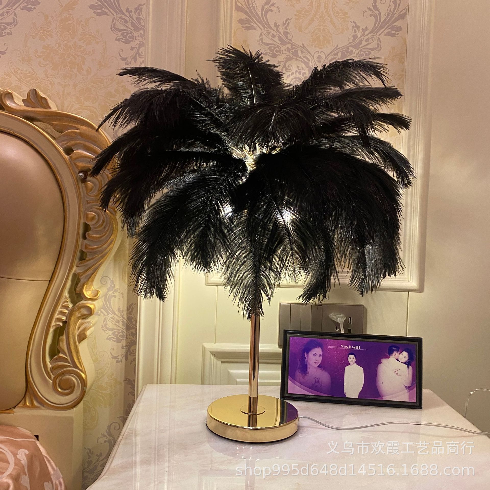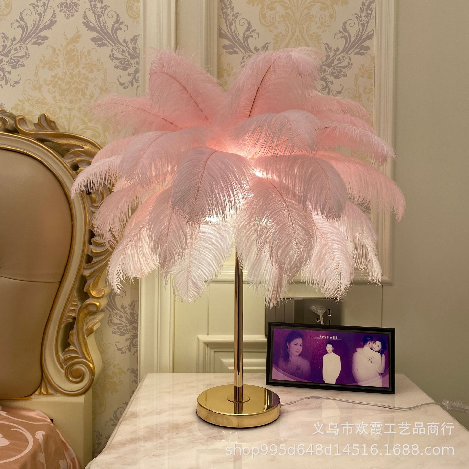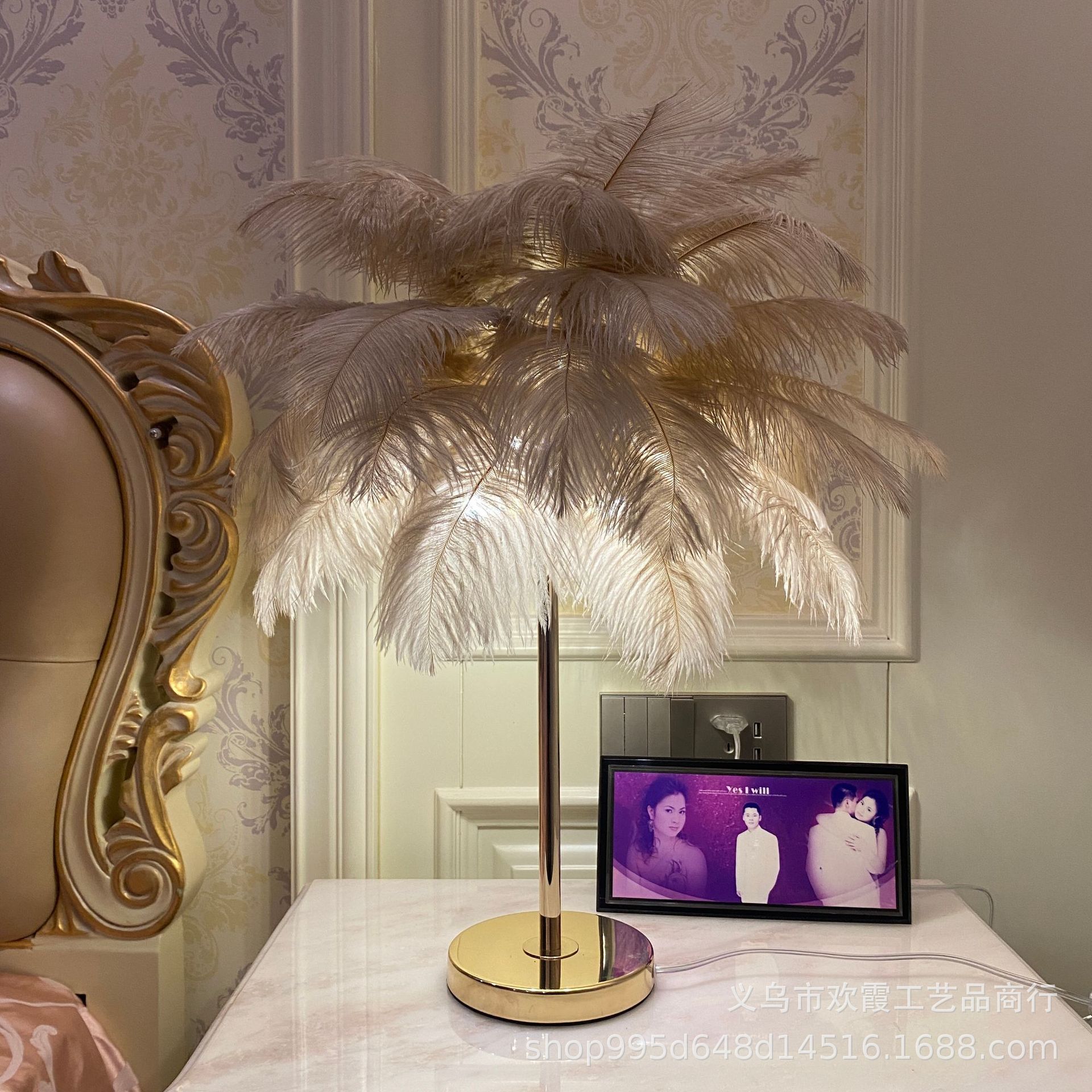 The manufacturer uses high-quality imported genuine ostrich feathers to make the lamp body, which is electroplated with French gold.Luxury light style, creating a warm and romantic atmosphere.With a variety of colored feathers,Standard colors include white, light pink, dark green, gray, etc. Other colors can be customized. Please note the feather color when placing your order.