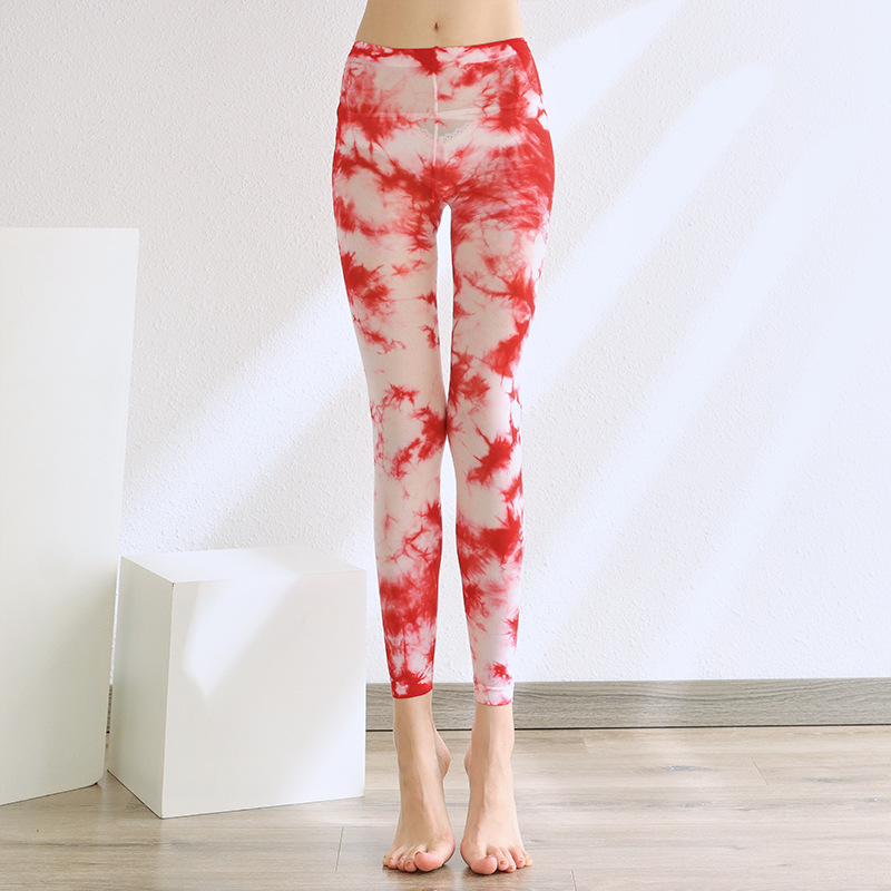 tie-dyed red and white crop jeans