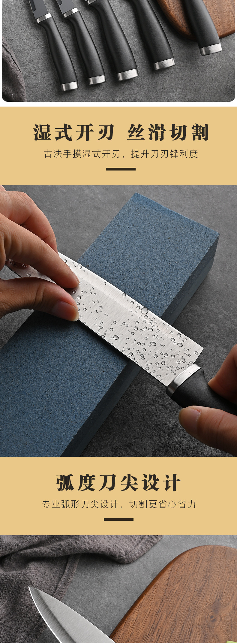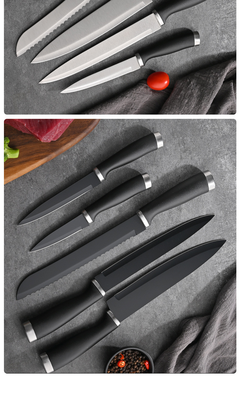 household wooden handle chef knife fruit knife stainless steel slice bread knife japanese replaceable blade knife six-piece set