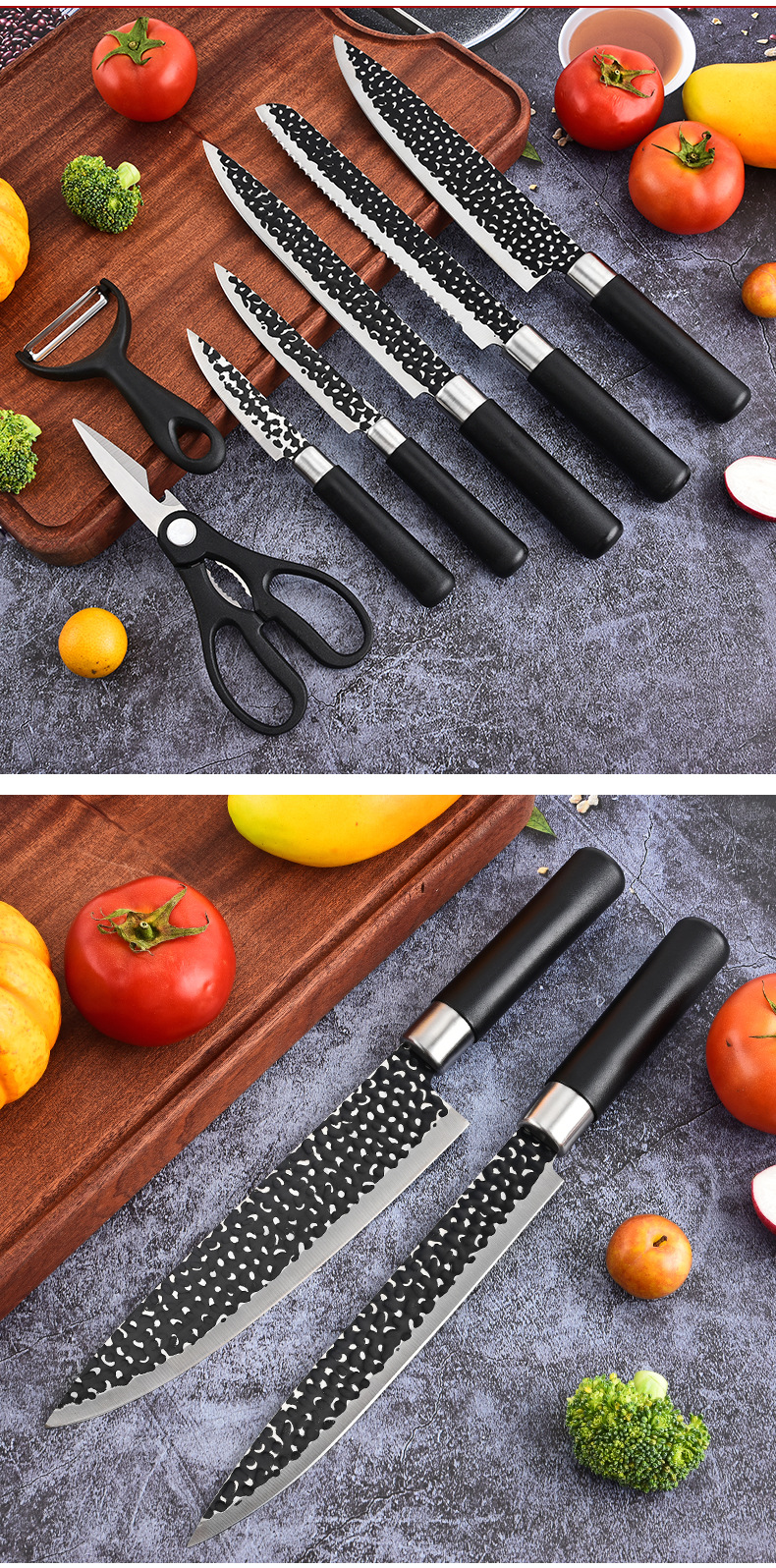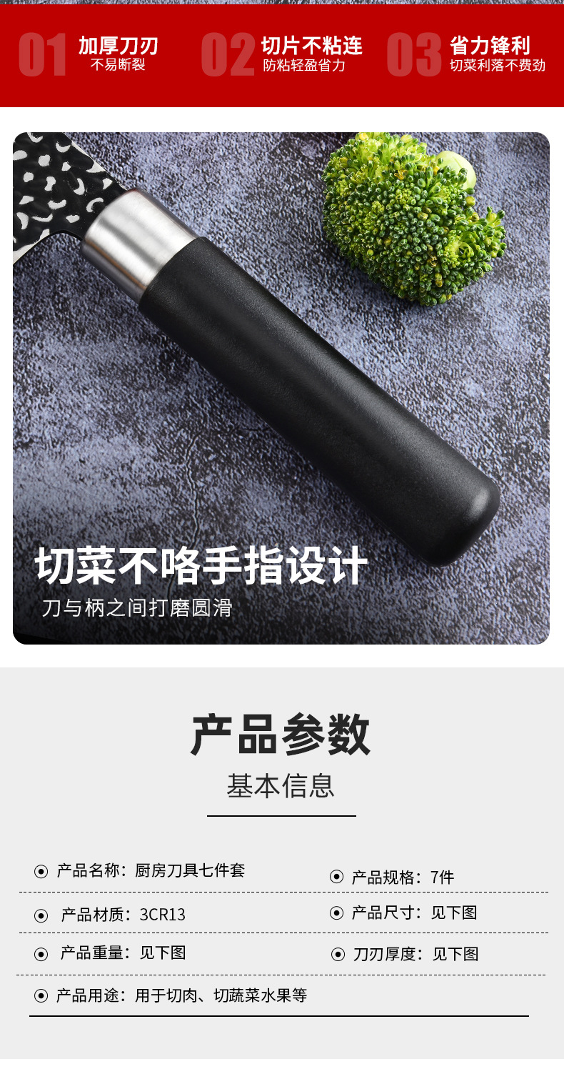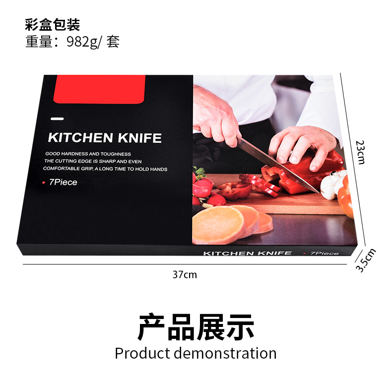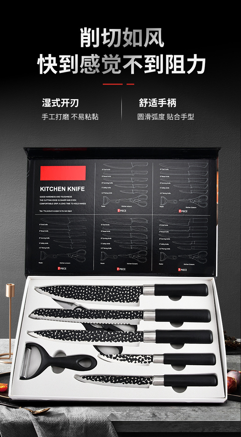 cross-border foreign trade knife suit cover emboss 7-piece knives household forging kitchen knife meat cutting slicing knife gift box