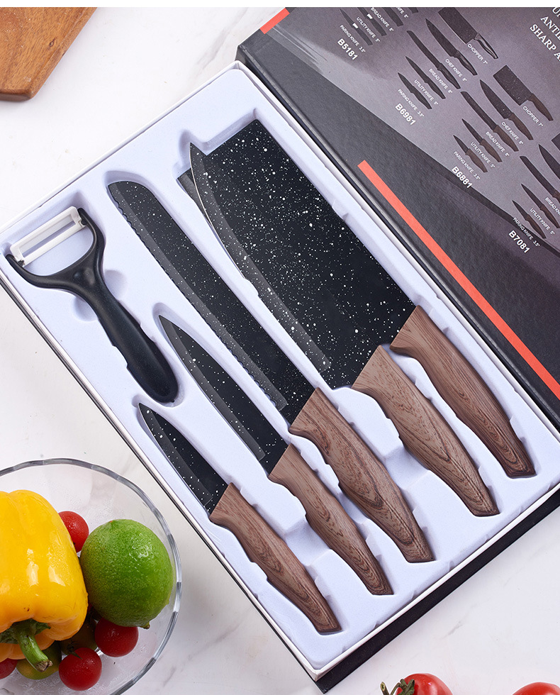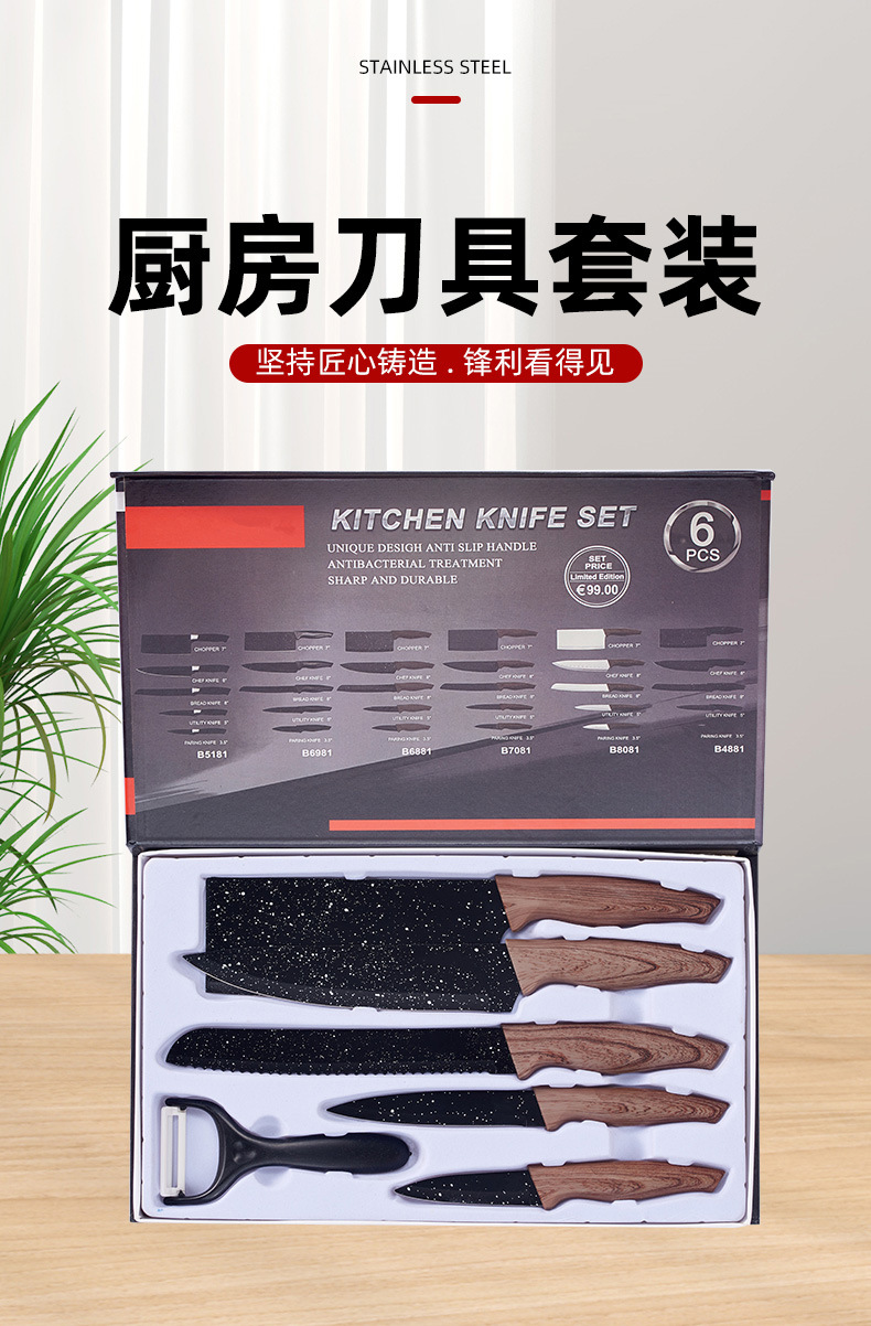 factory wholesale covered dovetail handle strap covered six-piece gift set knife kitchen knife stainless steel knife set household