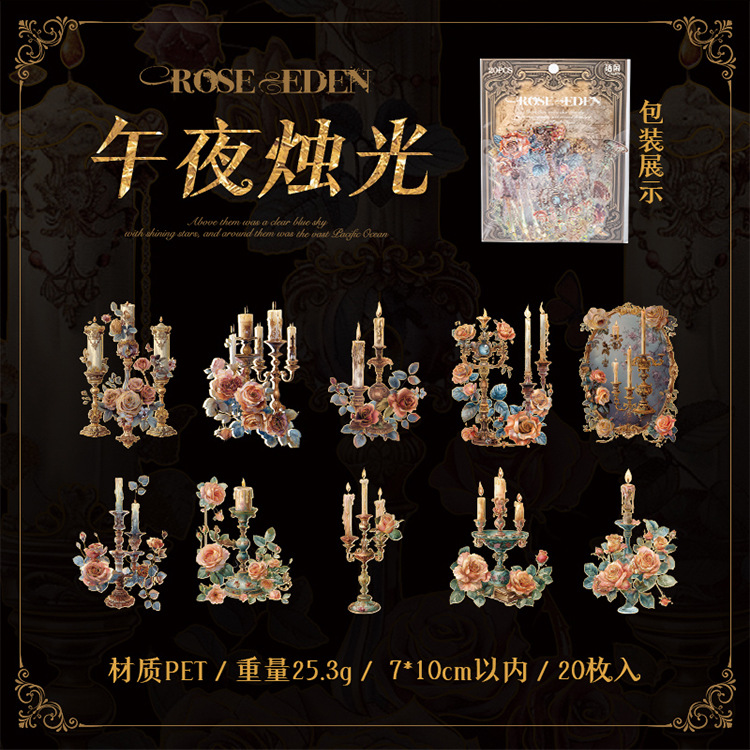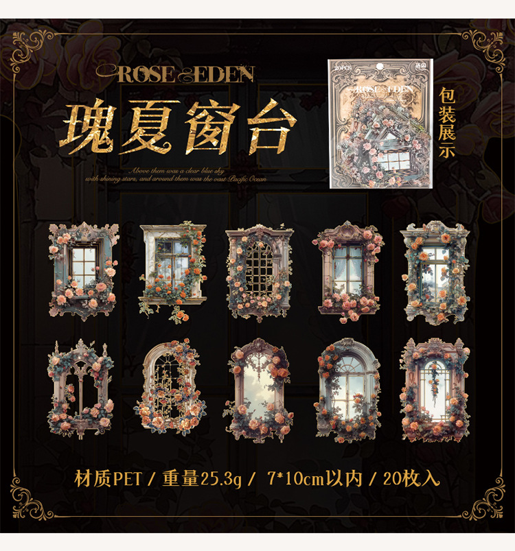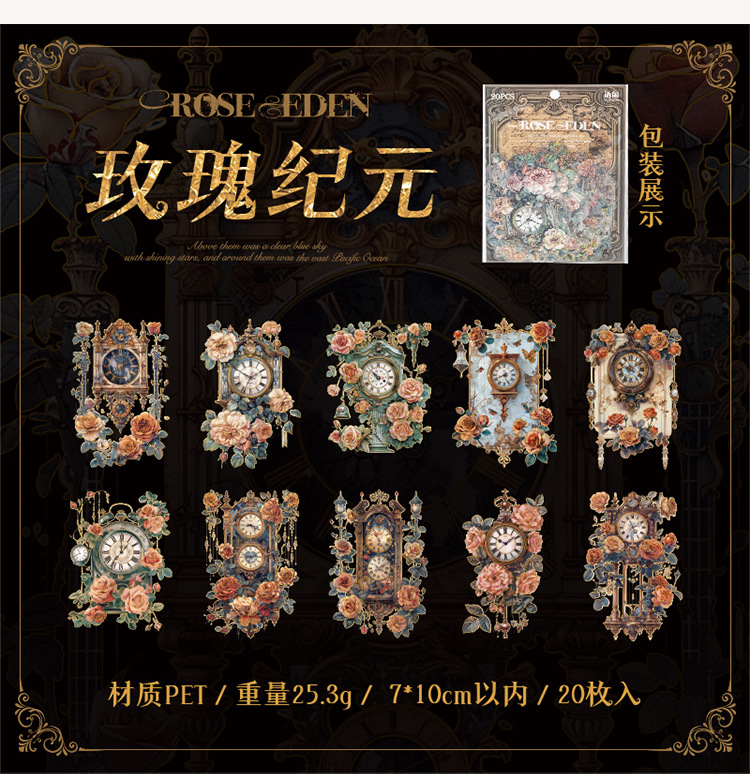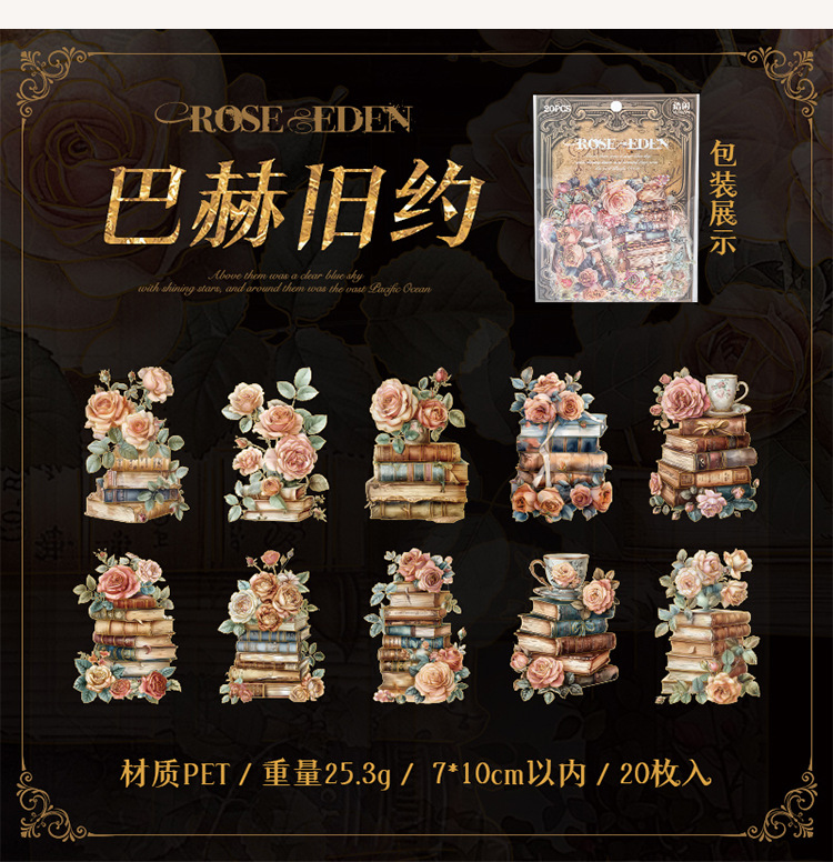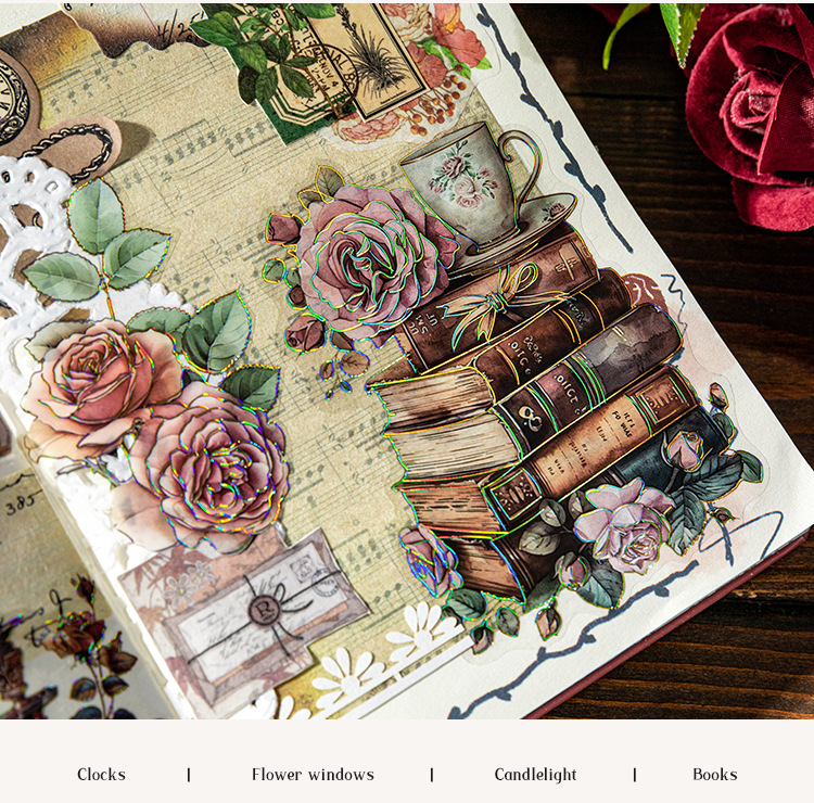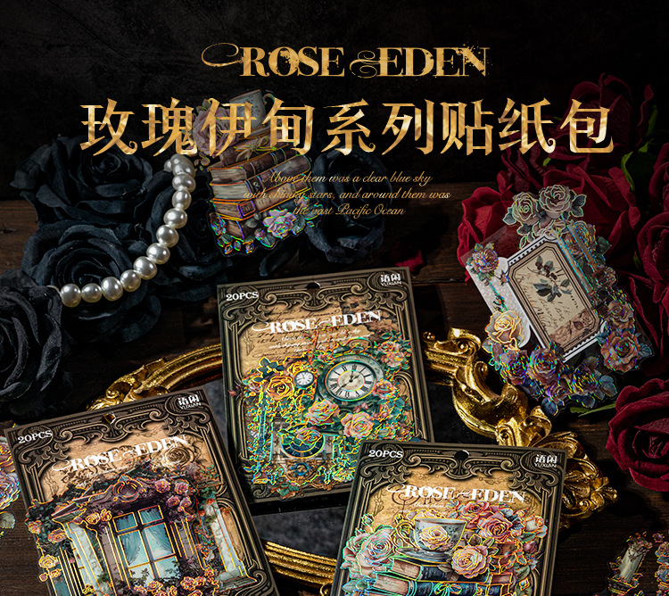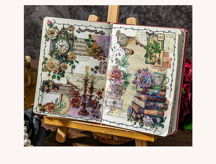 Sticker Package Rose Eden Series Retro Gorgeous Flower Notebook DIY Landscaping Decoration Material Stickers