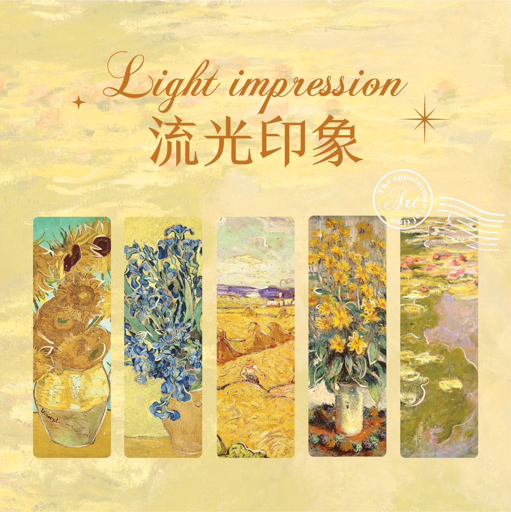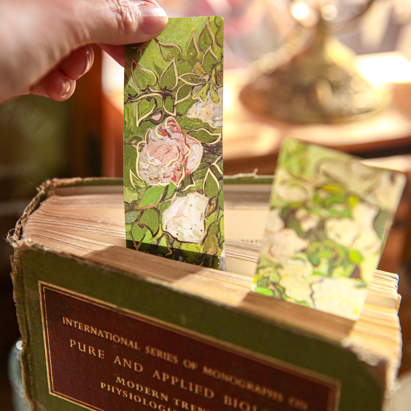 Bronzing PVC Bookmark Romantic Renaissance Series Plant Oil Painting Theme Waterproof Student Reading Mark Card