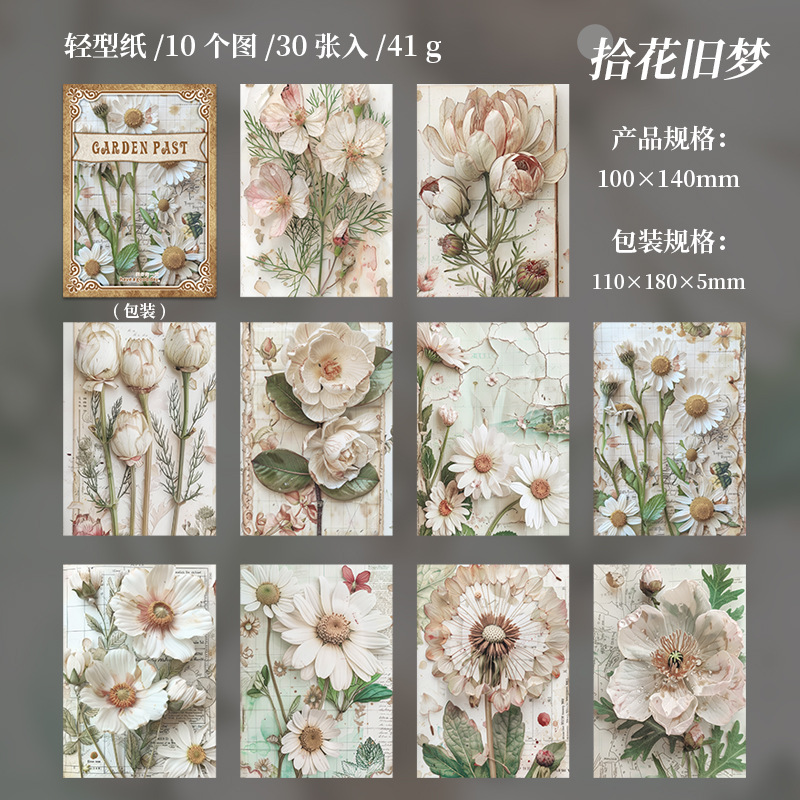 Material Paper Non-Adhesive Note Paper Garden past Series Tearable Journal Decoration Base Paper