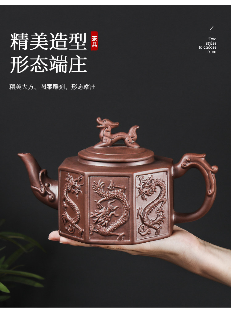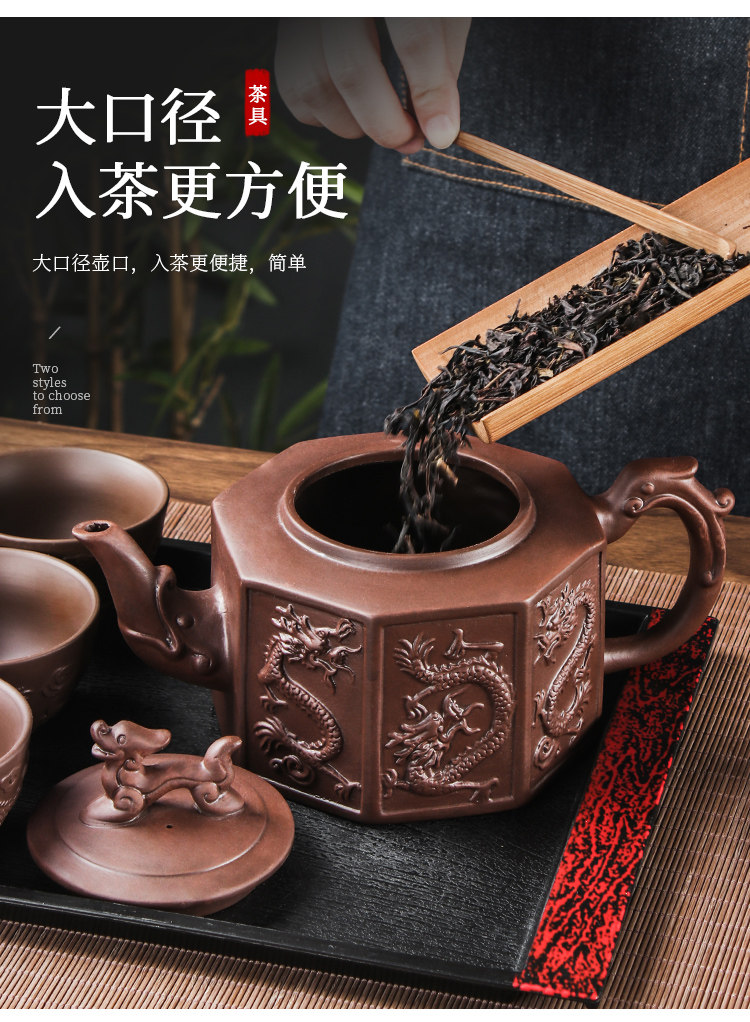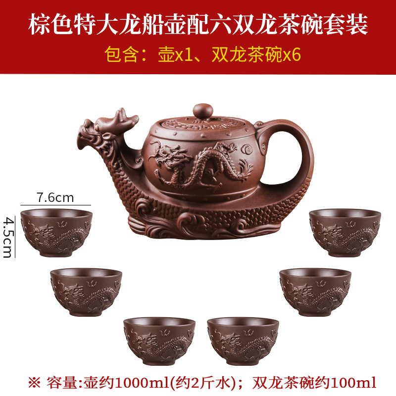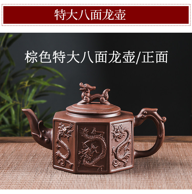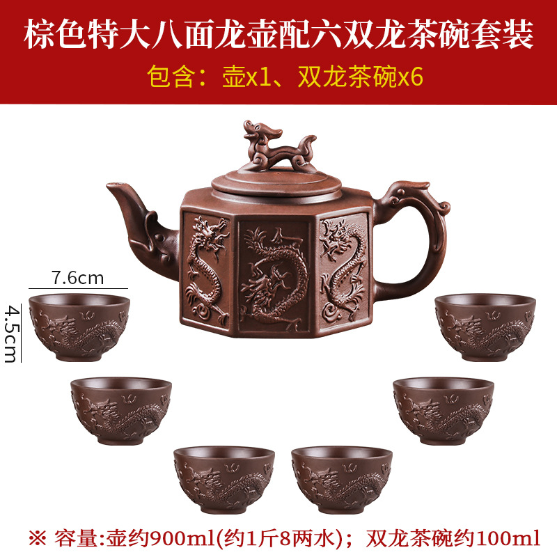 brown extra large eight-sided dragon pot +6 double dragon tea bowls