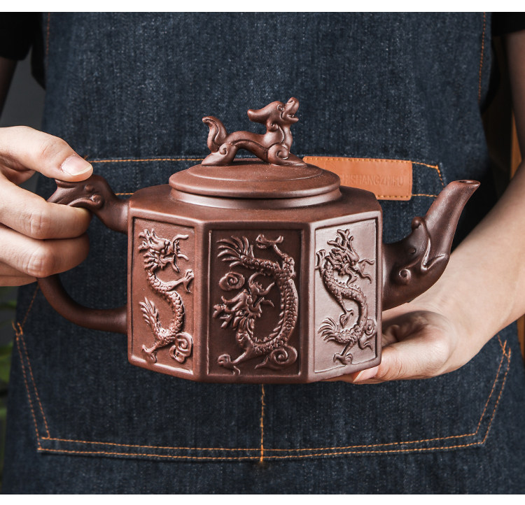 brown extra large eight-sided dragon pot (900 ml)