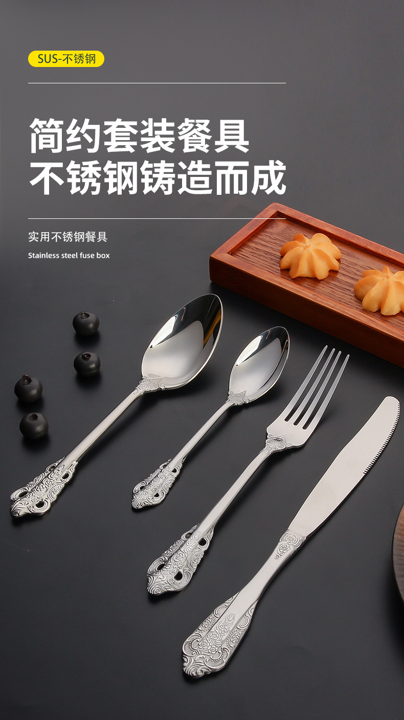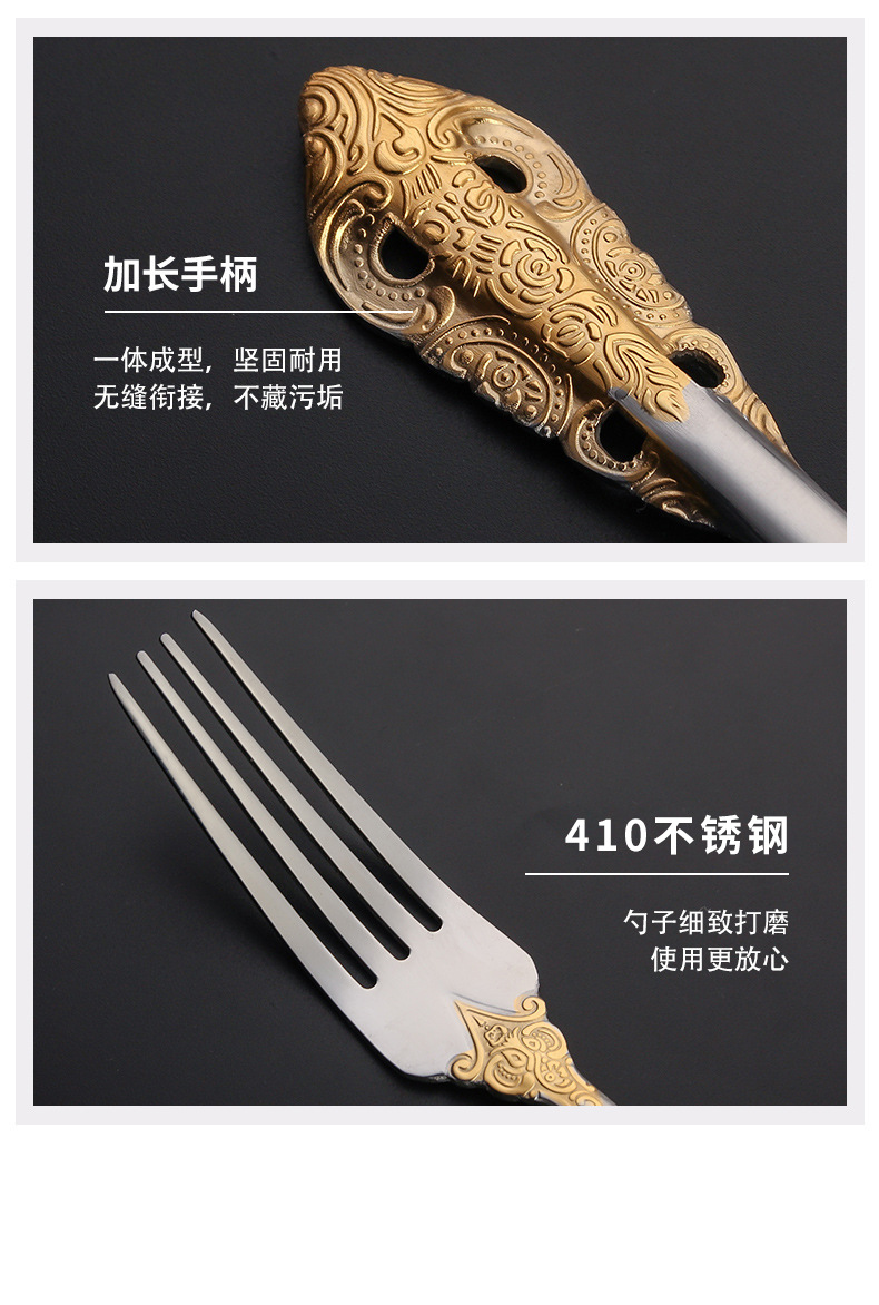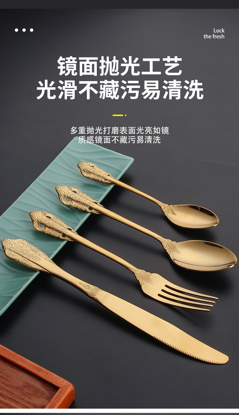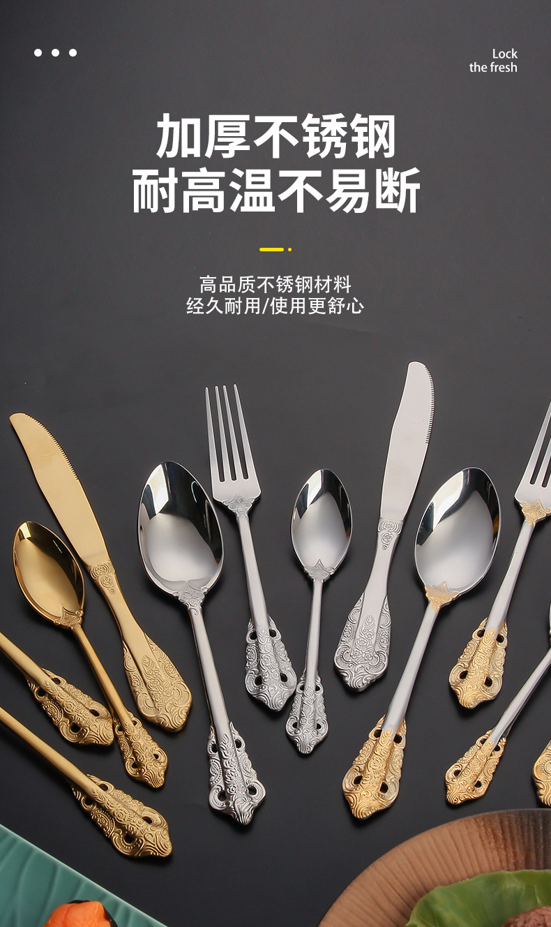 410 stainless steel tableware knife and fork set western retro relief fork nordic style court golden spoon wholesale
