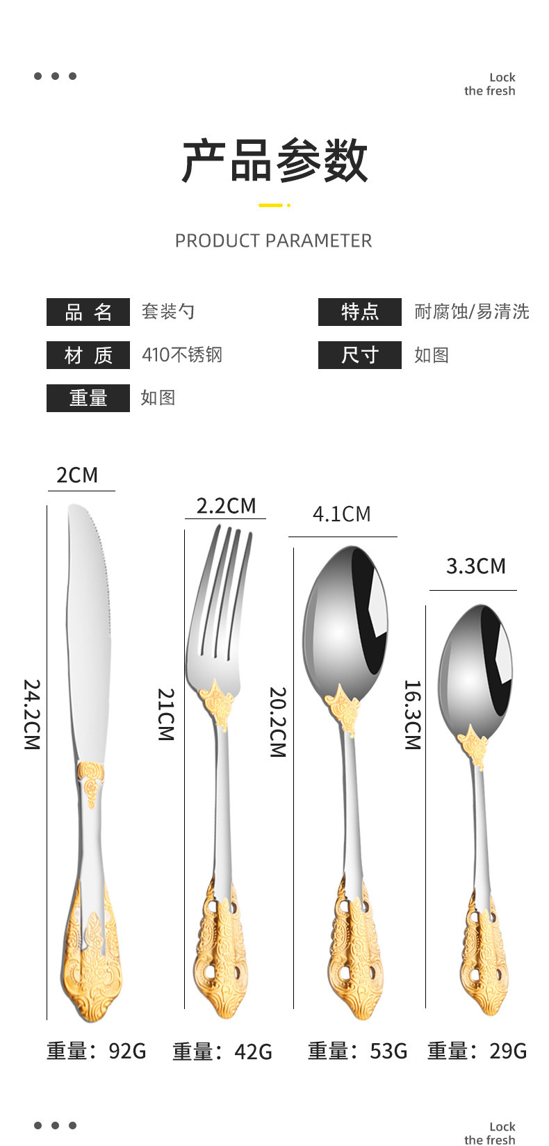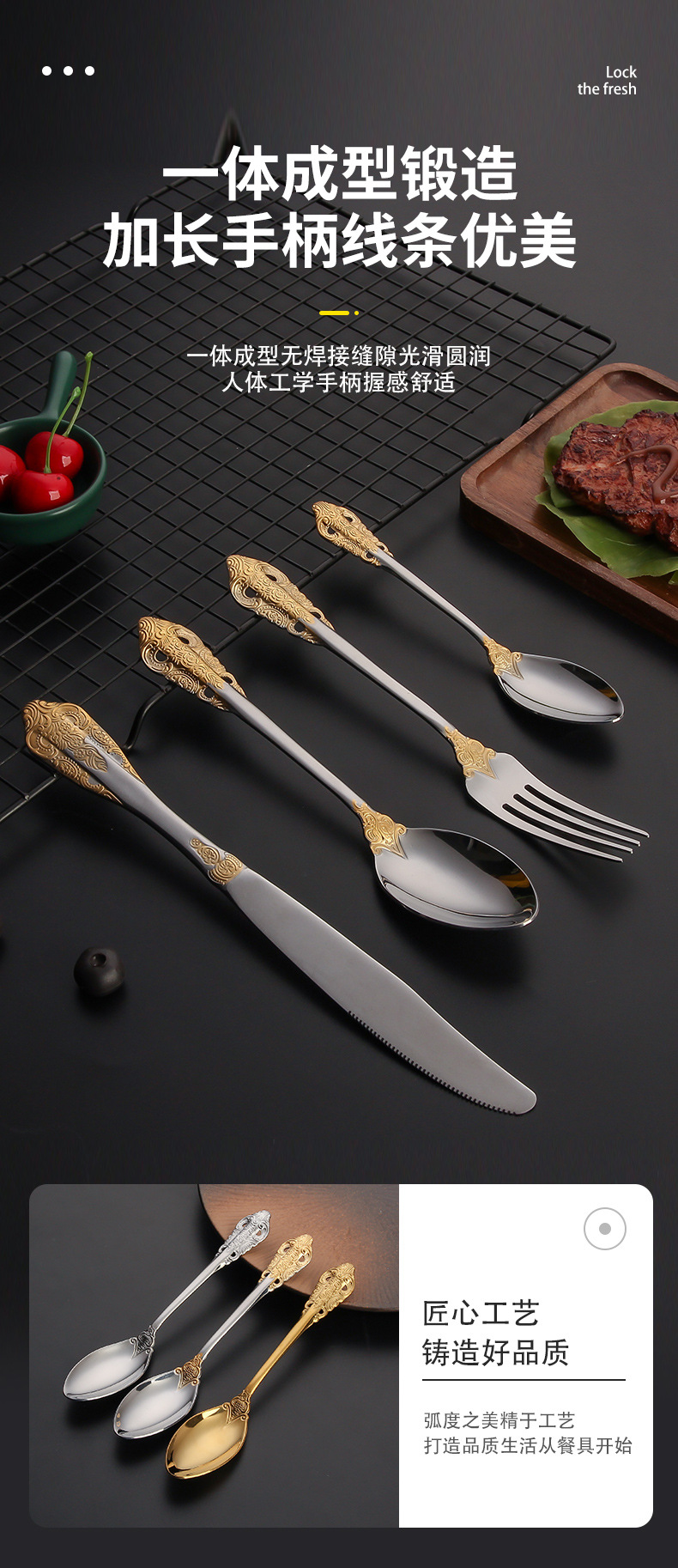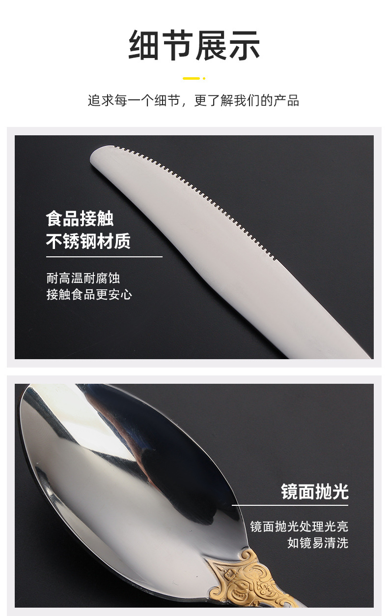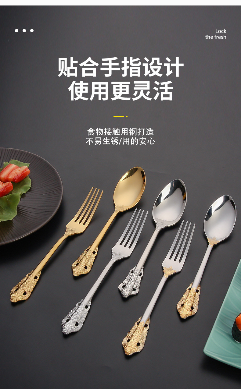 410 stainless steel tableware knife and fork set western retro relief fork nordic style court golden spoon wholesale