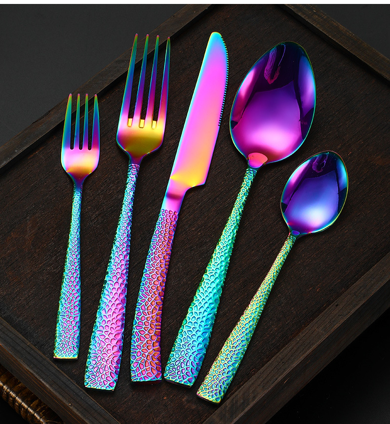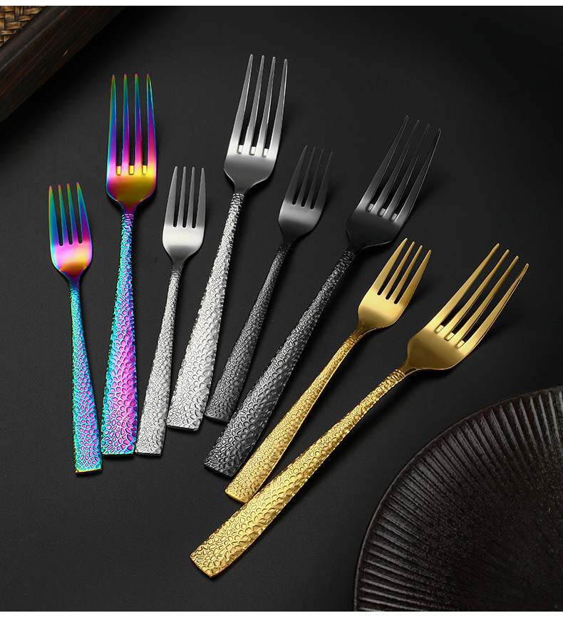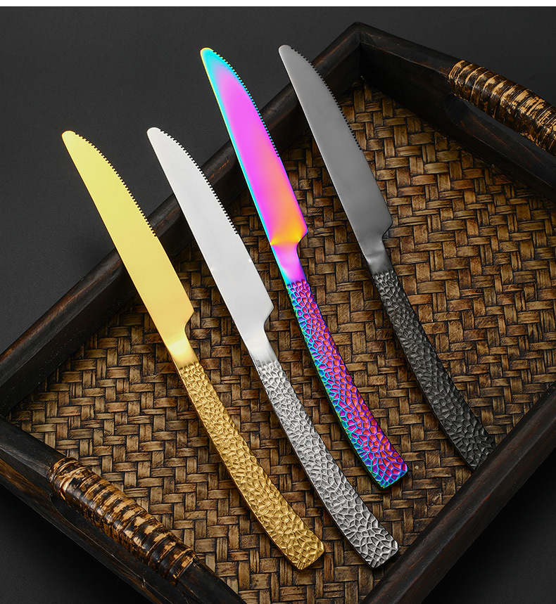 stainless steel scale european-style western tableware knife, fork and spoon gold-plated hammered thickened steak knife dessert fork spoon four-piece set