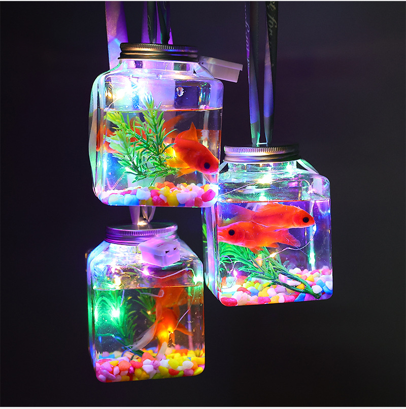 cans + ribbons + ornamental stone + lights + water plants