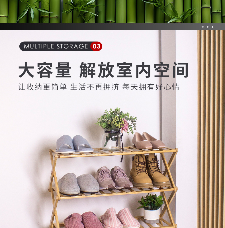 bamboo folding shoe rack multi-layer space-saving installation-free entrance shoes storage rack simple large capacity storage