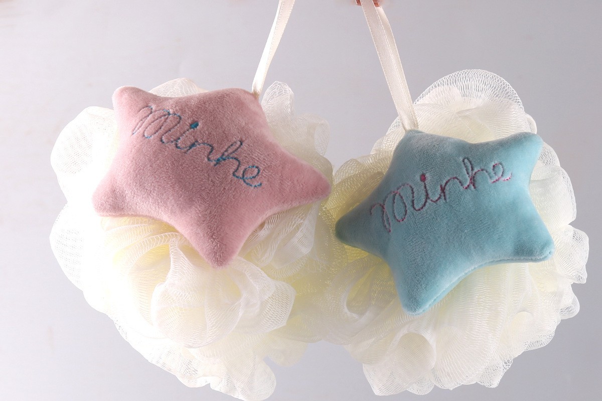 pink stars + beige bath ball