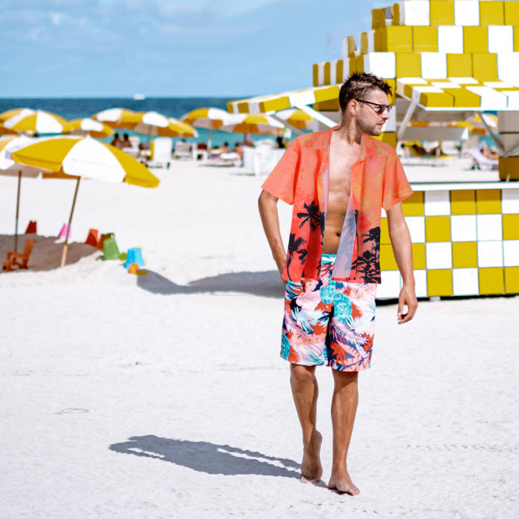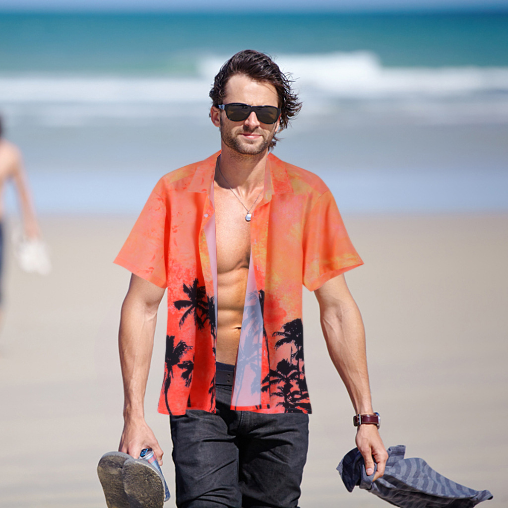 european and american beach short-sleeved shirt men's hawaiian shirt men's printed short-sleeved shirt factory direct sales