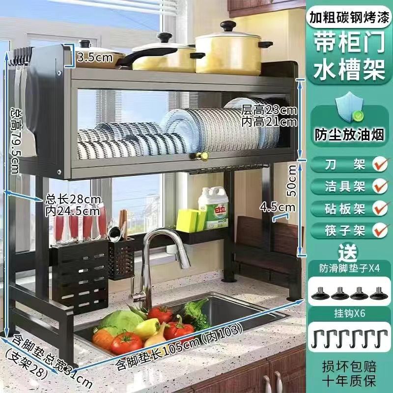 internet celebrity kitchen sink storage shelf household bowls and dishes sink cupboard multi-functional dust belt cabinet door dish organizer drain