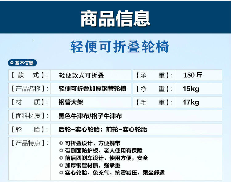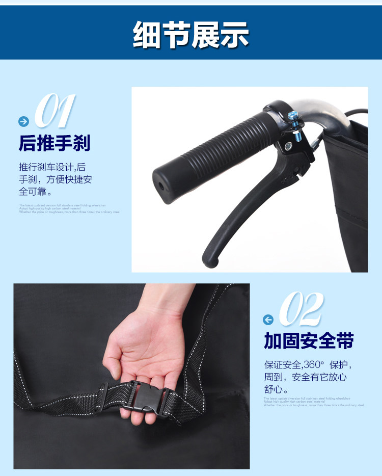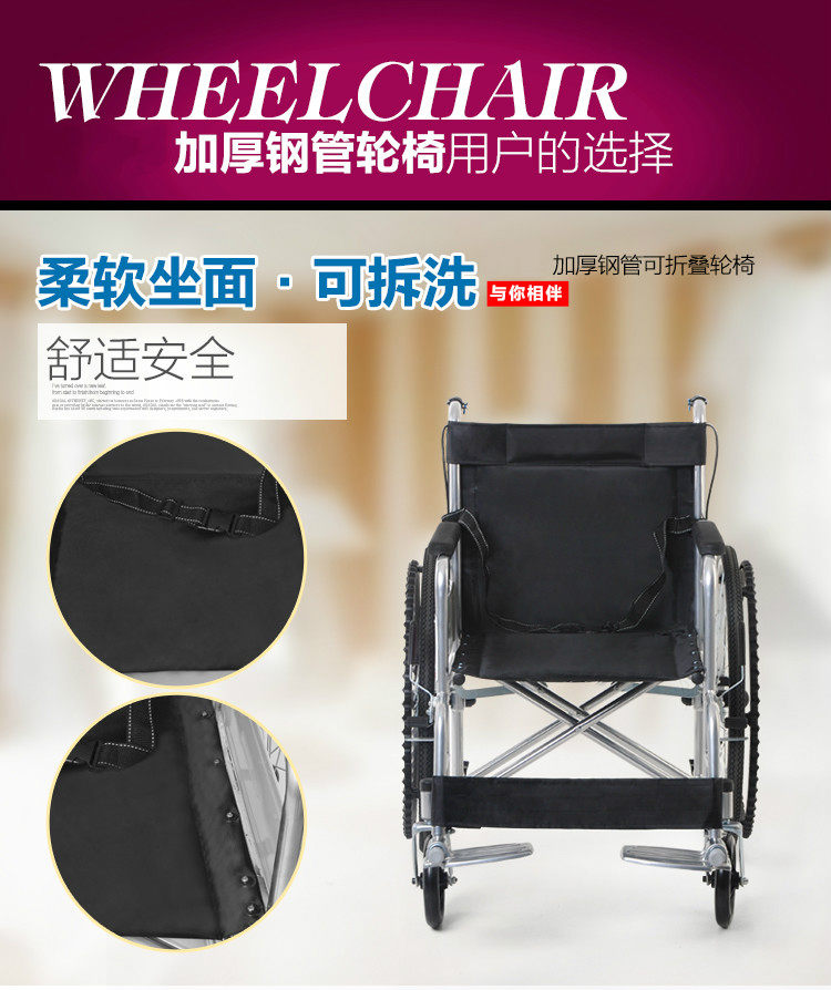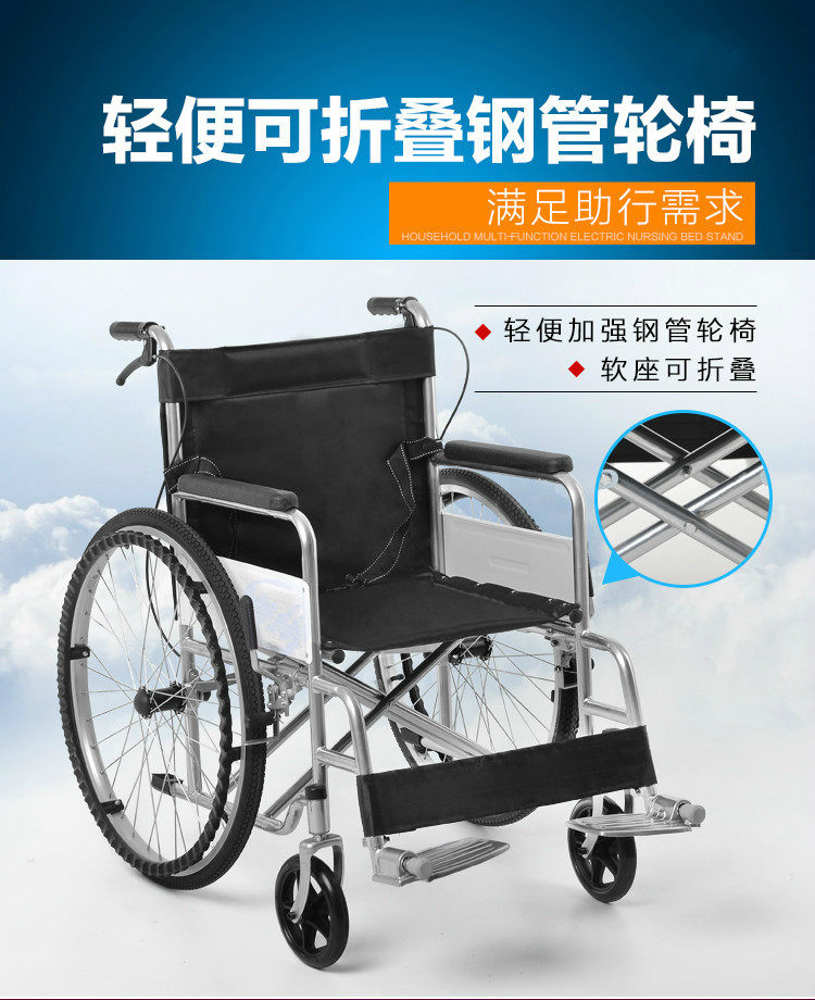 for export elderly wheelchair thick steel tube soft seats wheelchair folding wheelchair lightweight portable folding wheelchair