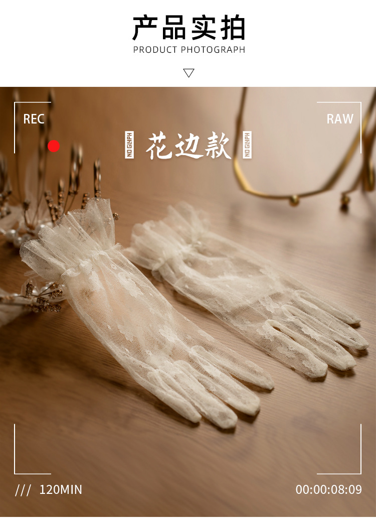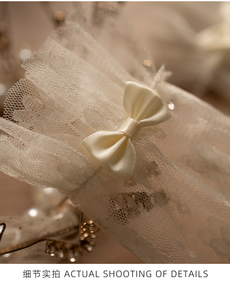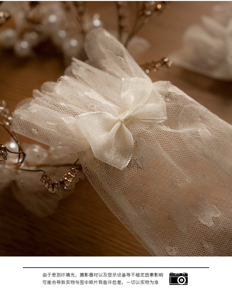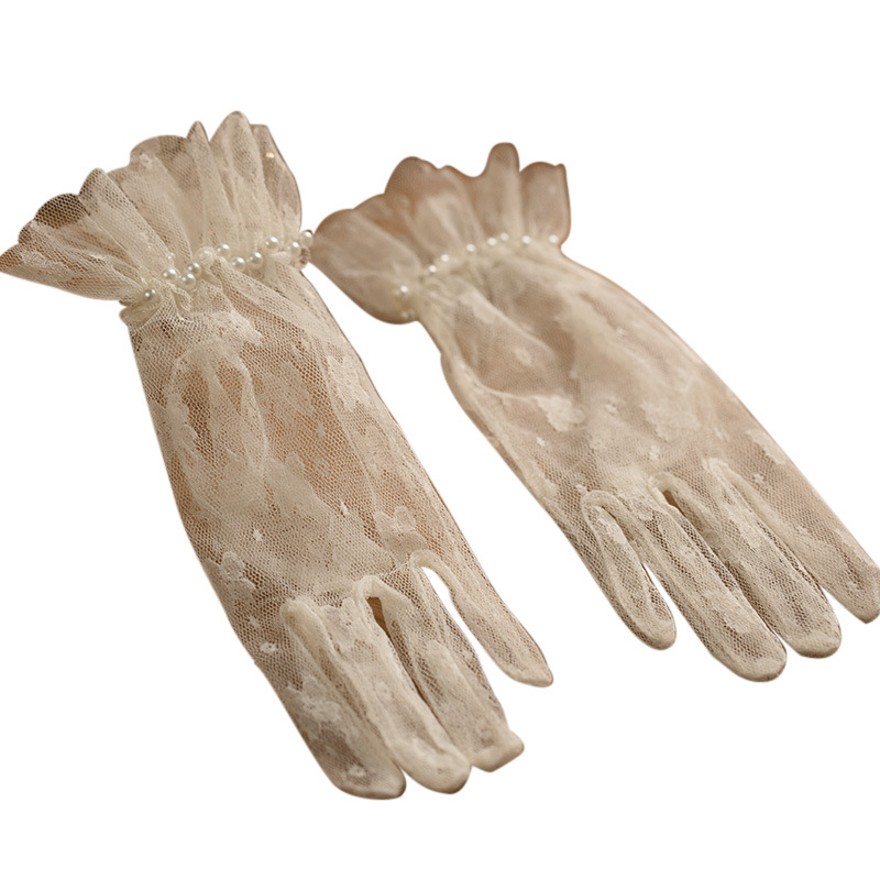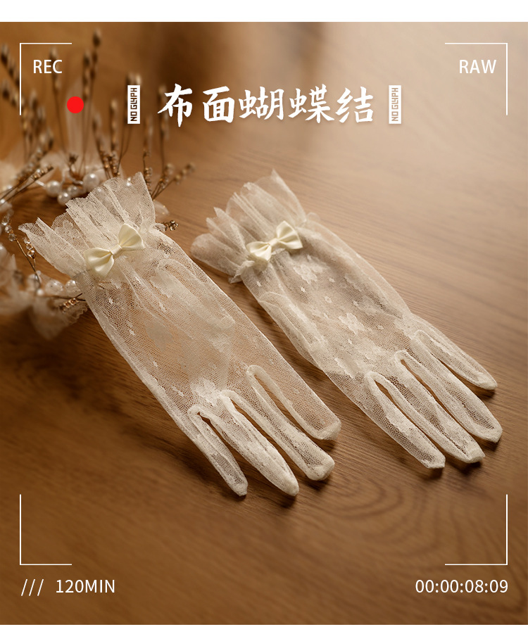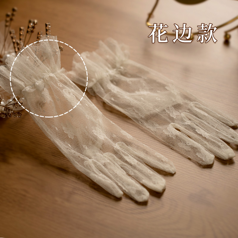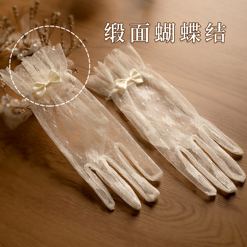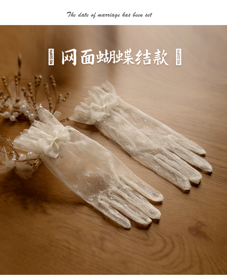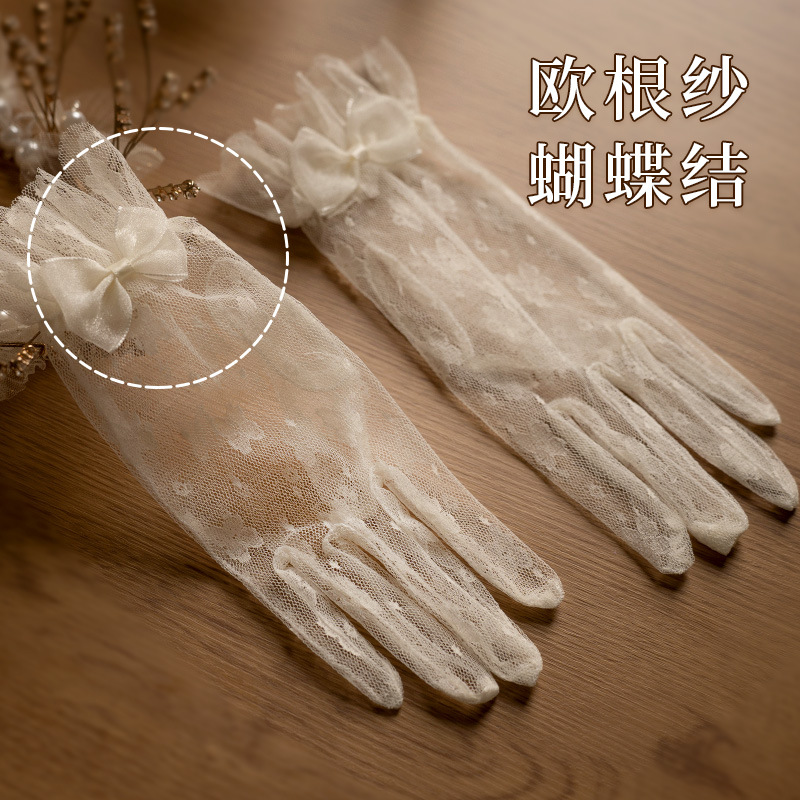 bridal wedding gloves vintage lace bow short mesh high-grade pearl dress trip shoot beautiful gloves