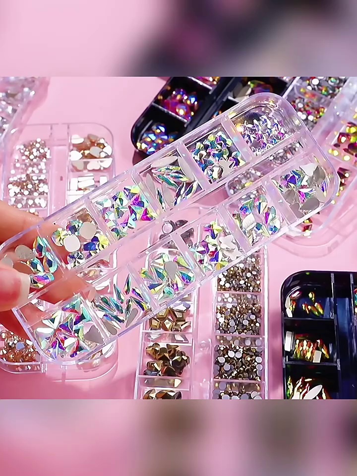 cross-border new arrival 12 grid manicure jewelry fancy shape diamonds flat bottom rhinestone ab nail beauty ornament rhinestone